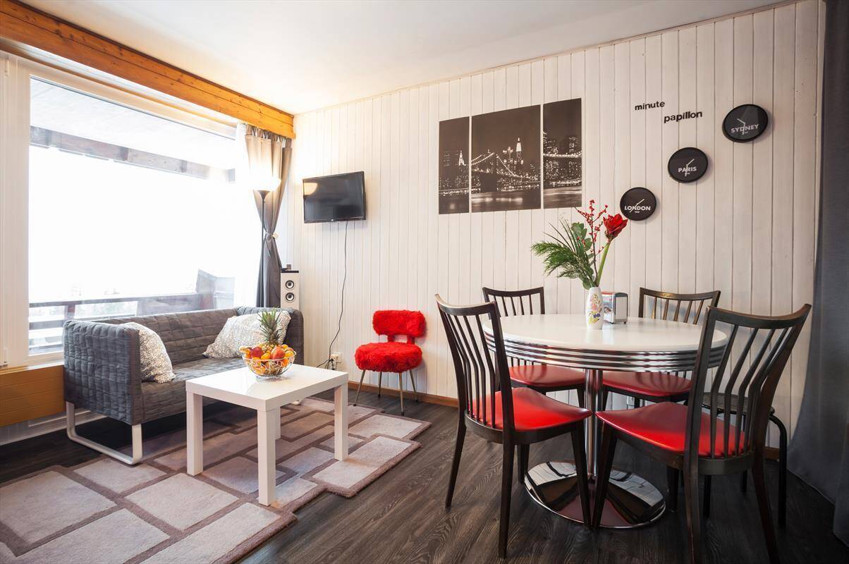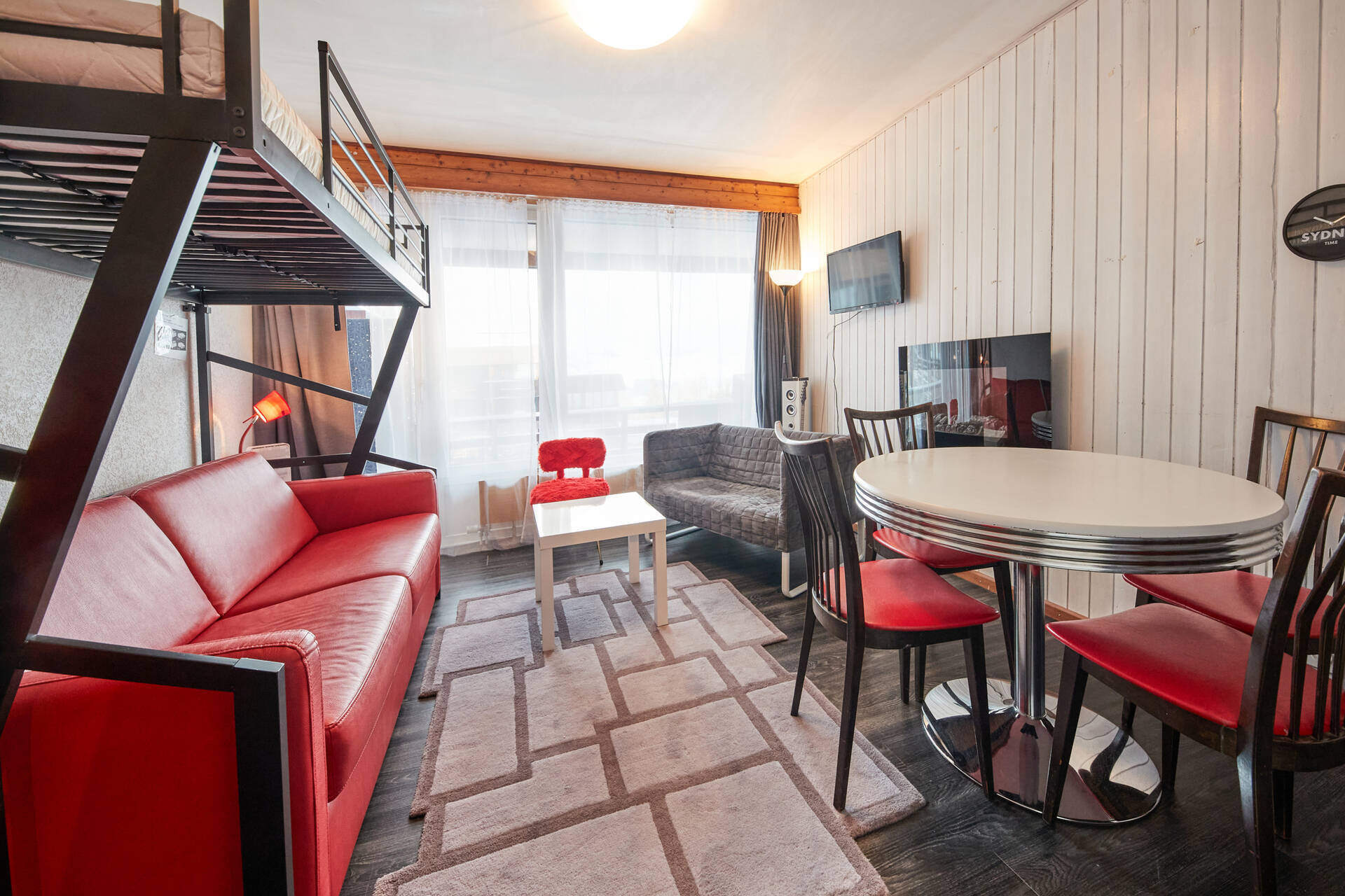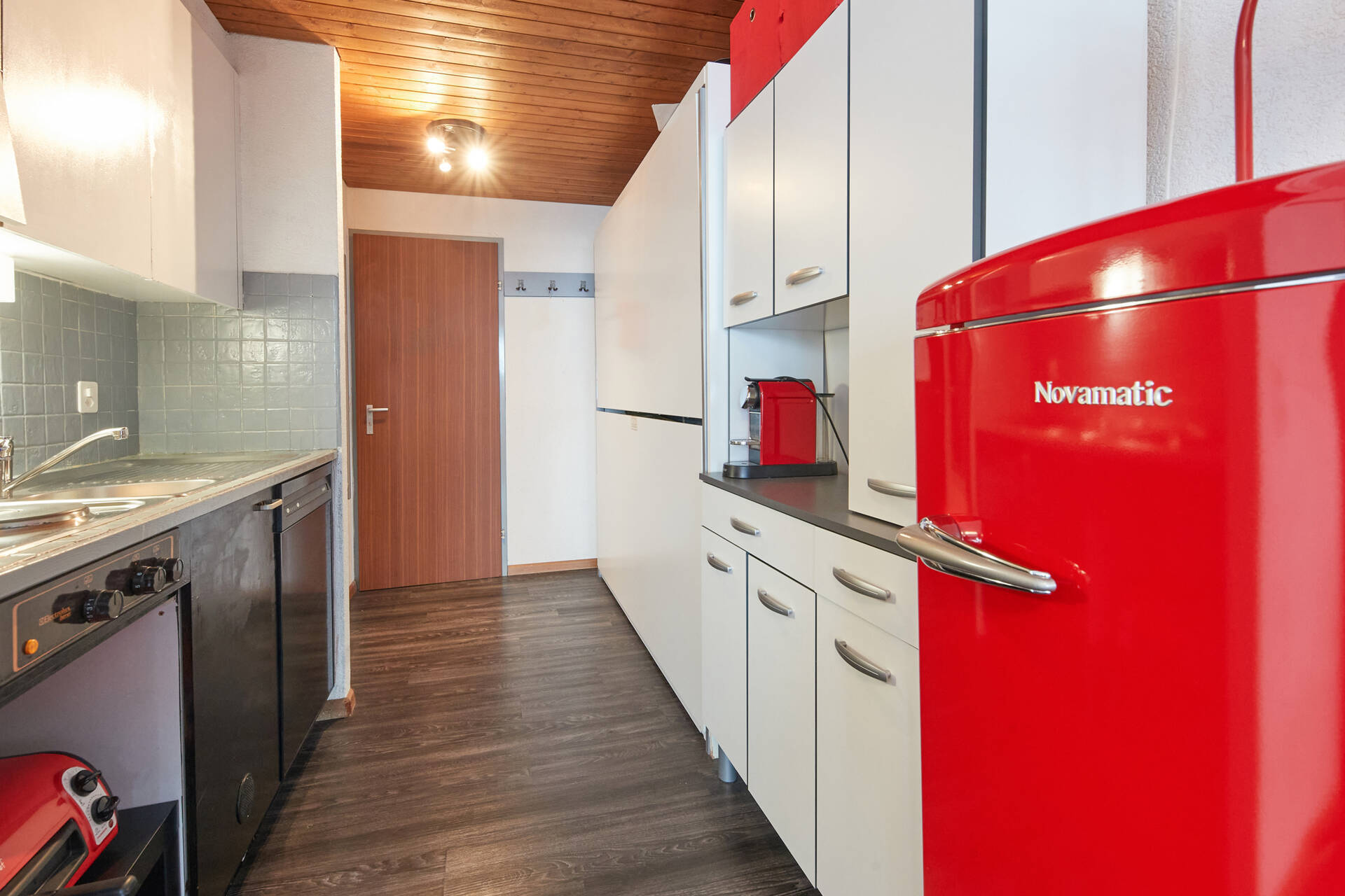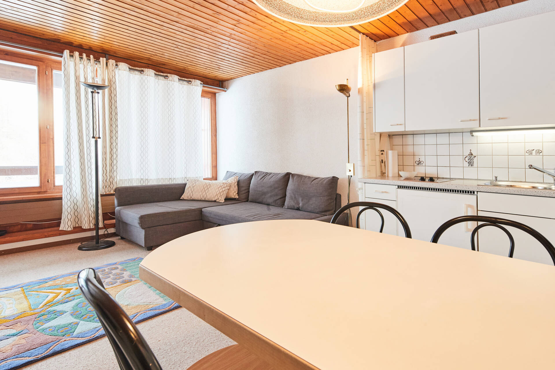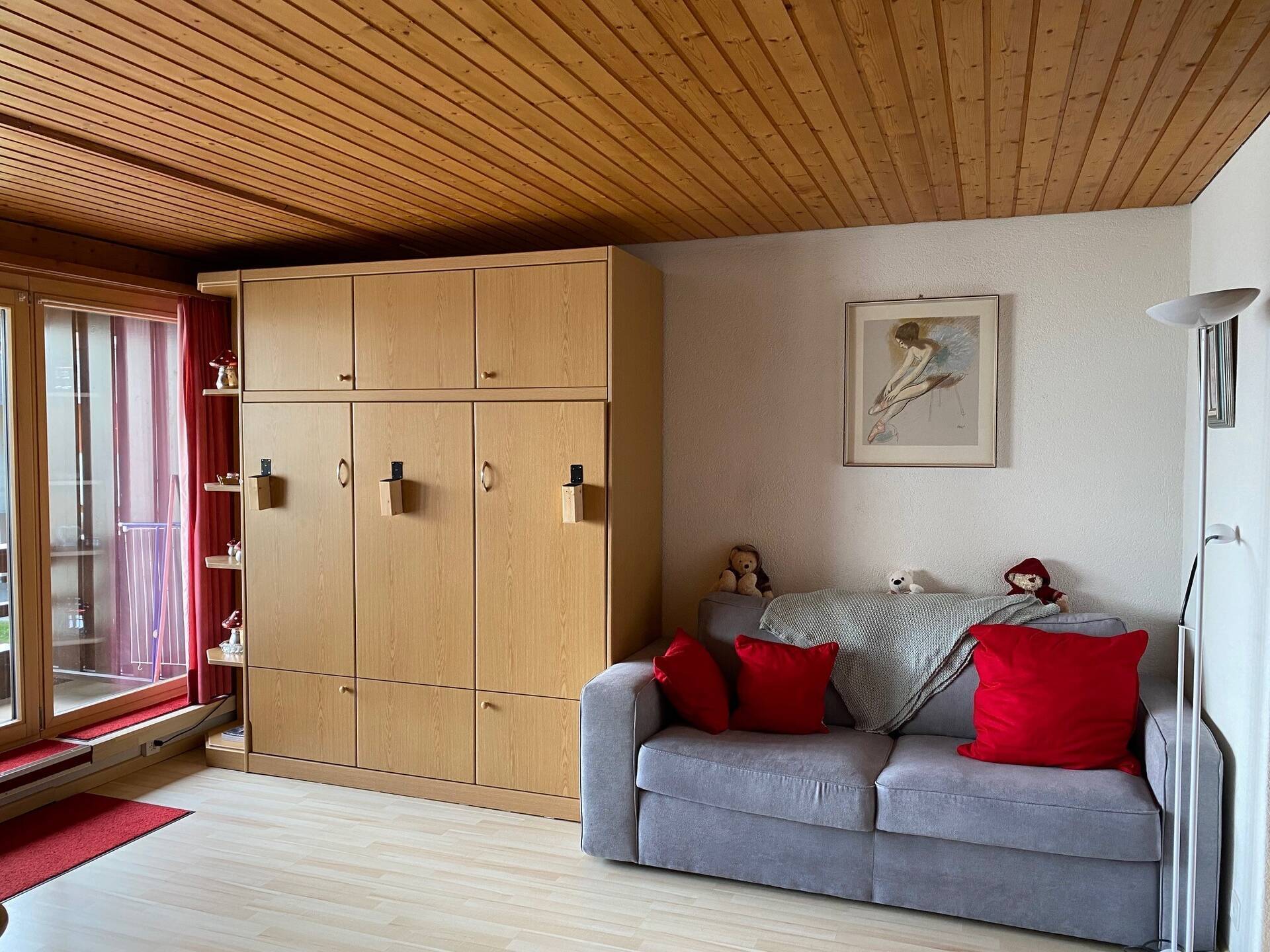 Studio (Typ D) für 4 Personen im 4. Stock des Gebäudes Greppon in Thyon 2000. Sie verfügt über eine offene Küche: 4 Kochplatten, Kühlschrank, Backofen und Mikrowellen. Das Wohnzimmer, mit TV und WLAN, besteht aus einem Sitzbereich (1 Sofa, 1 Bettsofa 160 X 200 und einem Wandklappbett 1.90 X 0.90) und einer Essecke. Badezimmer: WC, Waschbecken und Badewanne. Balkon in Richtung Nord-Osten mit Aussicht auf das Rhône Tal. Wohnung OHNE Teppichboden. Tiere erlaubt.