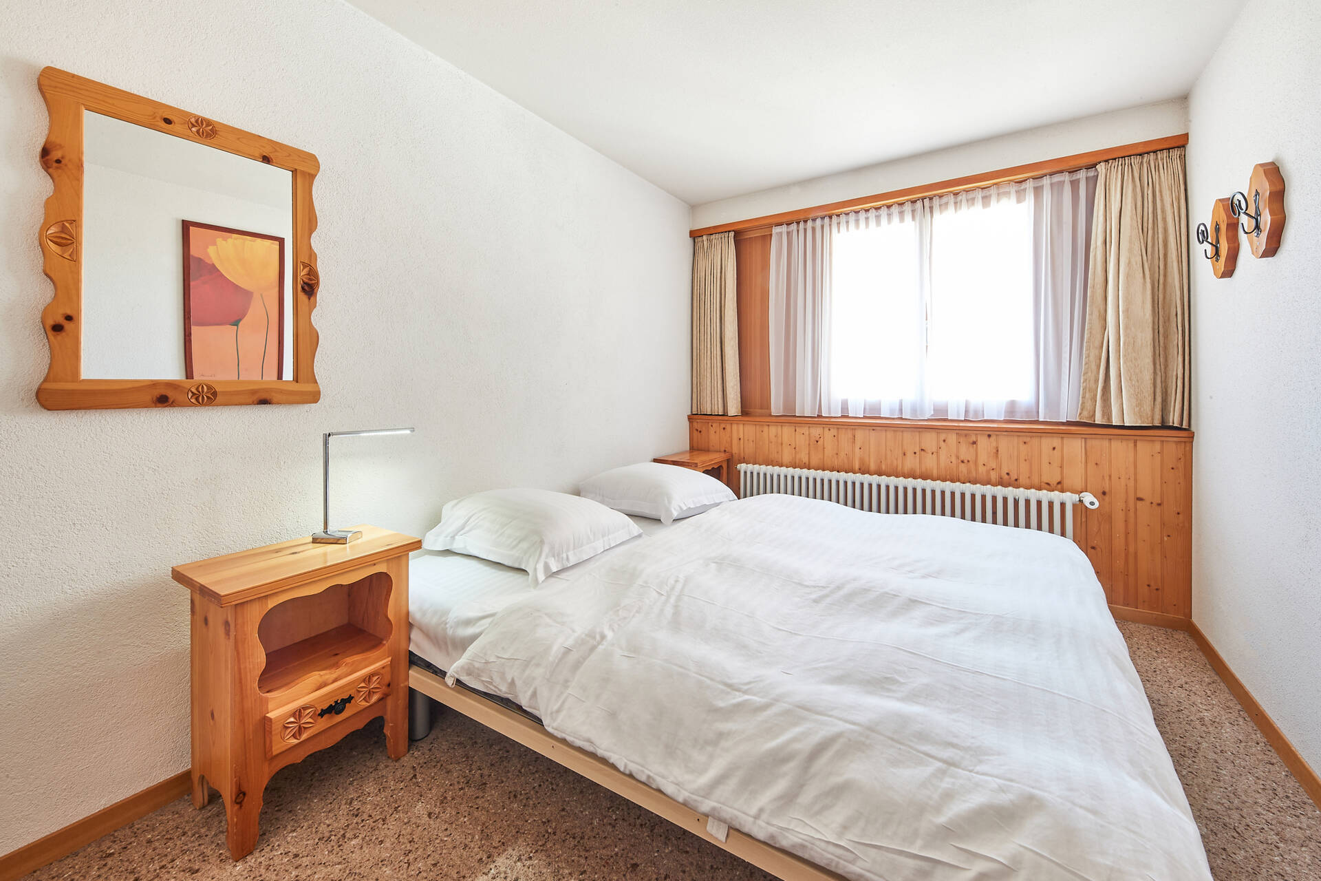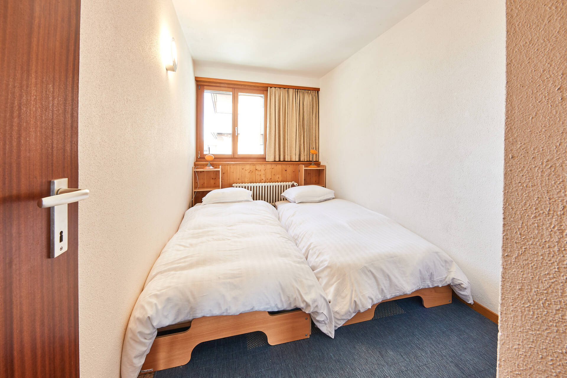 neu2.5-Zimmer-Wohnung (Typ I) für 4 Personen im 4. Stock des Gebäudes Rawyl in Thyon 2000. Sie verfügt über eine offene Küche: 4 Glaskeramikkochfelder, Backofen, Geschirrspüler, Kühlschrank mit kleinem Gefrierfach. Das Wohnzimmer, mit TV und WIFI, besteht aus einem Sitzbereich (2 Sofas) und einer Essecke. Schlafzimmer mit TV (Zugang durch das Kinderzimmer) mit einem Doppelbett (2 Matratzen 2.00 X 0.90) und Kinderzimmer mit einem Stockbett (1.90 X 0.80). Badezimmer: WC, Waschbecken und Badewanne. Balkon in Richtung Westen mit Aussicht auf das Zentralplatz von Thyon 2000 und das Val d'Hérens. Wohnung OHNE Teppichboden. Tiere nicht erlaubt.