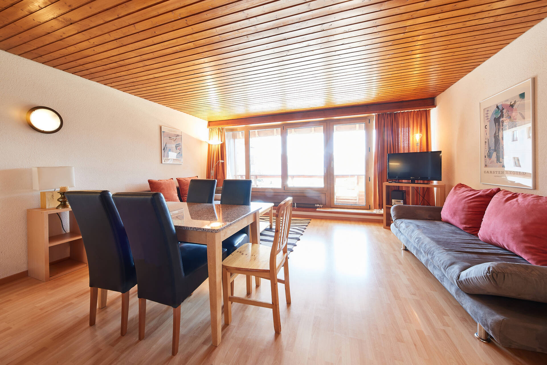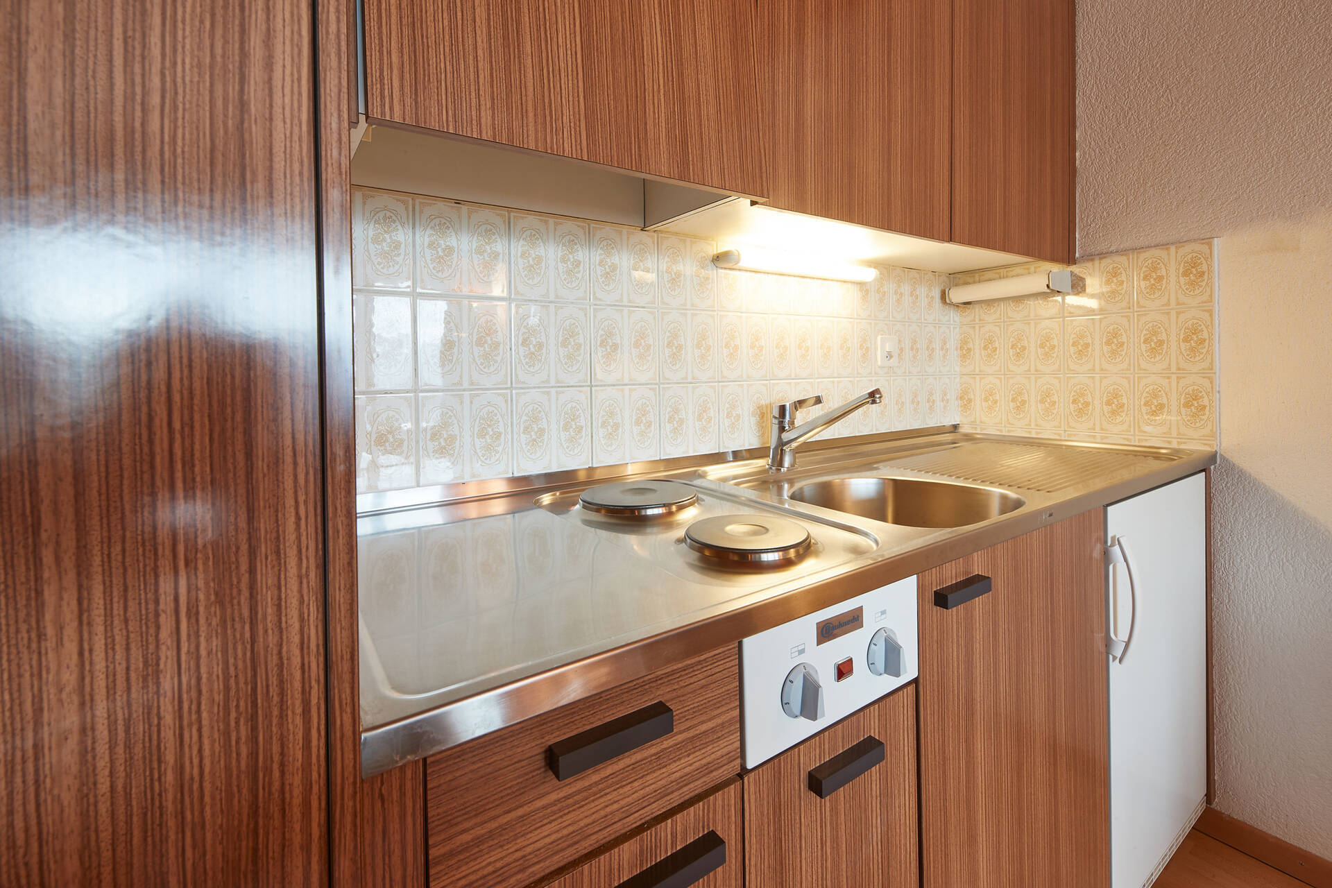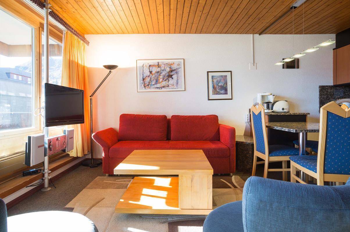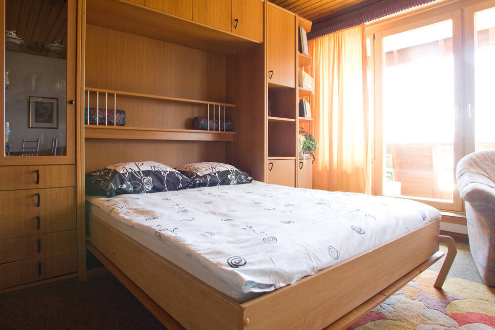 neu1-Zimmer-Wohnung für 4 Personen (Typ D), im dritten Stockwerk des Gebäudes Greppon in Thyon 2000. Sie verfügt über eine offene Küche mit Laminatboden, 3 Kochplatten, einen kleinen Backofen und eine Geschirrspülmaschine. Das Wohnzimmer ist mit einem Schrankklappbett (90/190), einem Doppelschlafsofa (160/190) oder einem Hochdoppelbett, TV, WIFI und einer Essecke ausgestattet. Im Badezimmer, gibt es ein WC, ein Waschbecken und eine Badewanne. Ein angenehmer Balkon, Richtung Westen, gibt Blick auf die Gebäude Wildhorn, die Walliser und die Waadtländer Alpen. Wohnung OHNE Teppisch. Tiere nicht erlaubt.