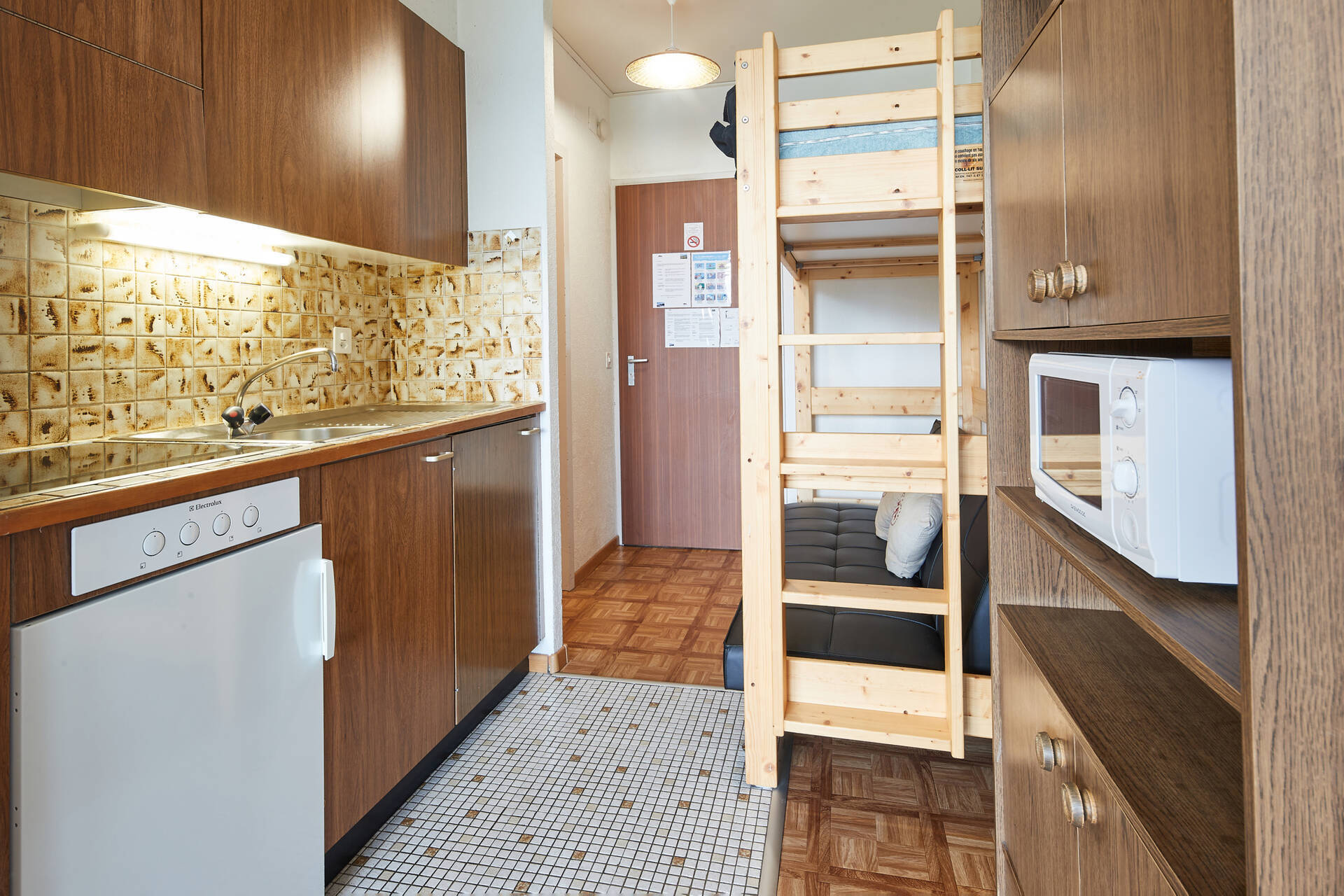 Studio (Typ D) für 4 Personen im 3. Stock des Gebäudes Greppon in Thyon 2000. Sie verfügt über eine offene Küche: 4 Glaskeramikkochfelder, Mikrowelle und Kühlschrank mit kleinem Gefrierfach. Das Wohnzimmer, mit TV, besteht aus einem Sitzbereich (2 Sesseln, 1 Doppelschlafsofa 2.00 X 1.40, 1 Hochbett, oben 1.90 X 0.80, unten Doppelschlafsofa 2.00 X 1.40) und einer Essecke. Badezimmer: WC, Waschbecken und Badewanne. Balkon in Richtung Osten mit Aussicht auf das Val d'Hérens. Wohnung OHNE Teppichboden. Tiere sind akzeptiert.
