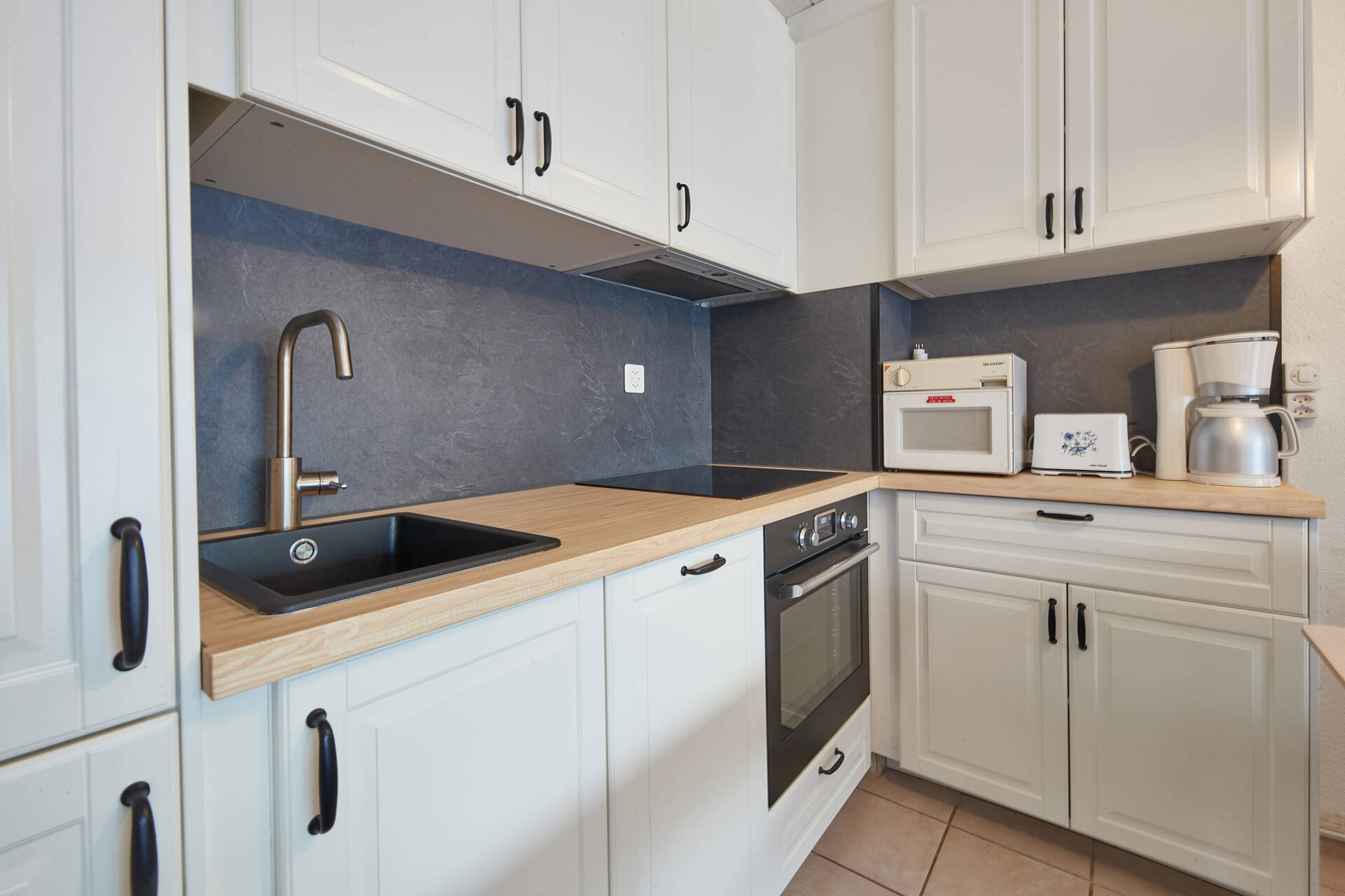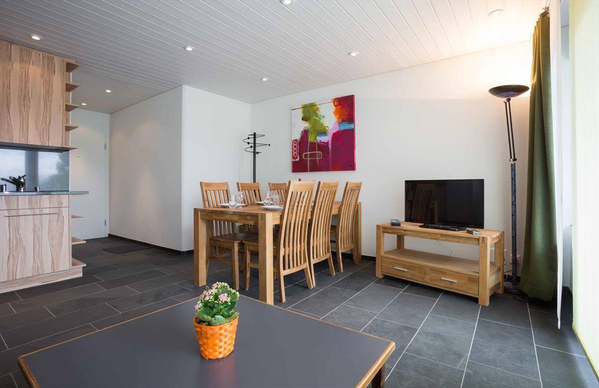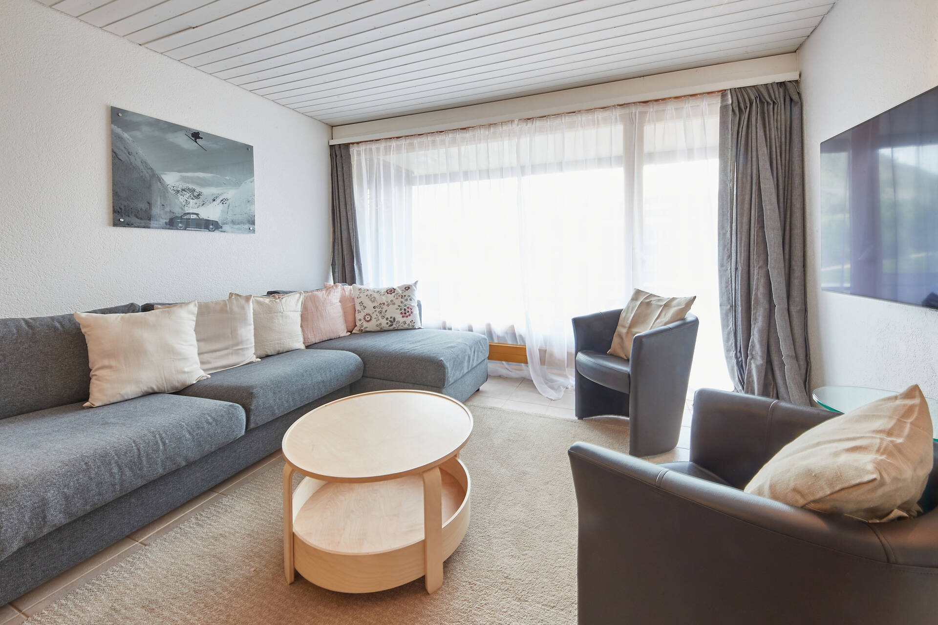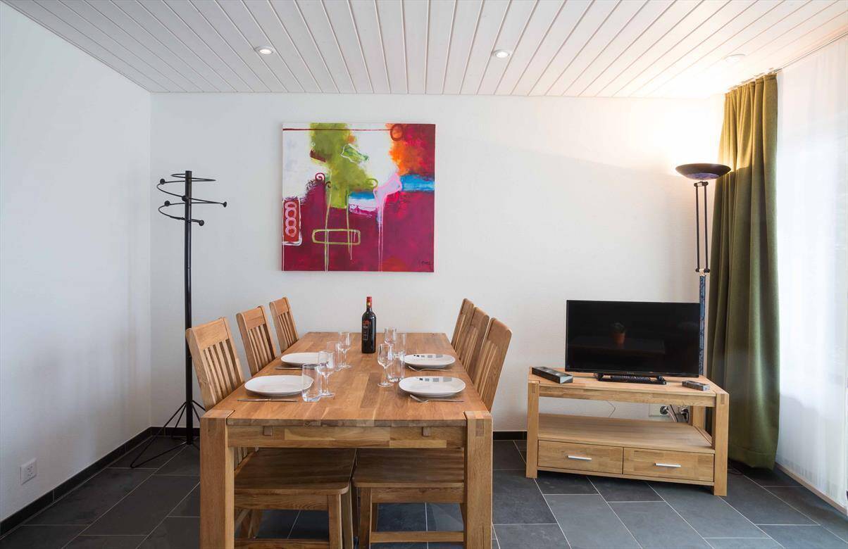 neu2-Zimmer-Wohnung (Typ H) für 4 Personen im 5. Stock des Gebäudes Rawyl in Thyon 2000. Sie verfügt über eine offene Küche: 3 Kochplatten, Backofen und Kühlschrank mit kleinem Gefrierfach. Das Wohnzimmer, mit TV und WIFI, besteht aus einem Sitzbereich (2 Sesseln und 1 Doppelschlafsofa) und einer Essecke. Schlafzimmer mit einem Doppelbett (2 Matratzen 2.00 X 0.90). Badezimmer: WC, Waschbecken und Badewanne. Balkon in Richtung Westen mit Aussicht auf die Waadtländer Alpen. Wohnung MIT Teppichboden. Tiere nicht erlaubt.