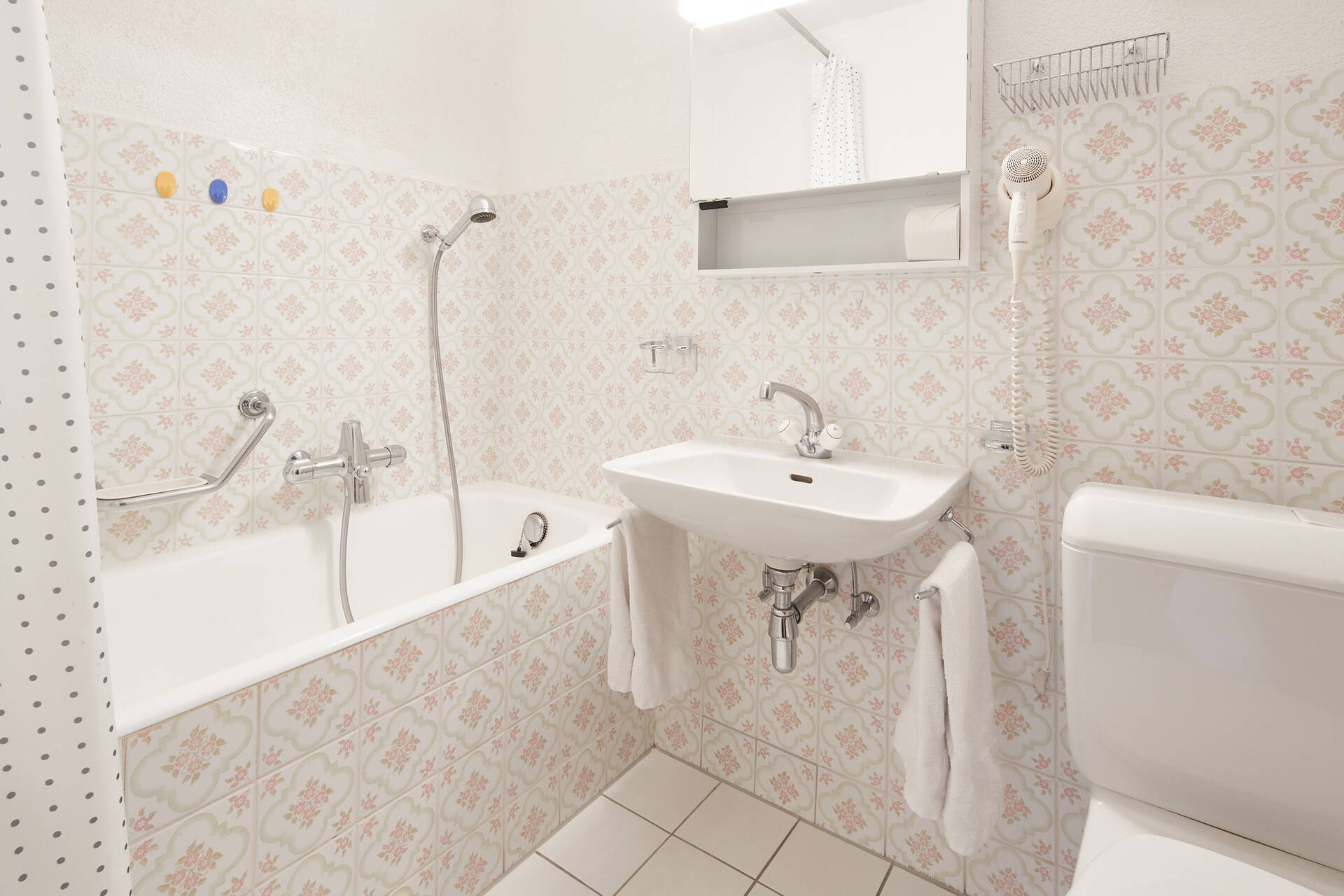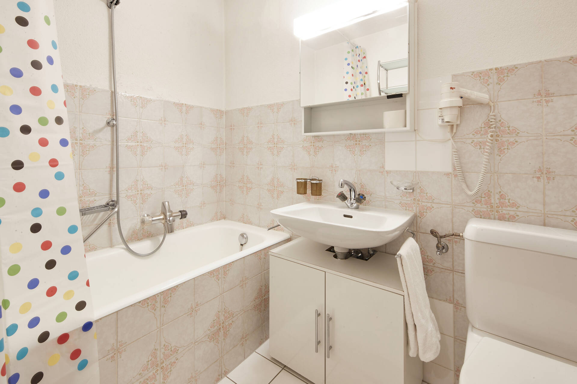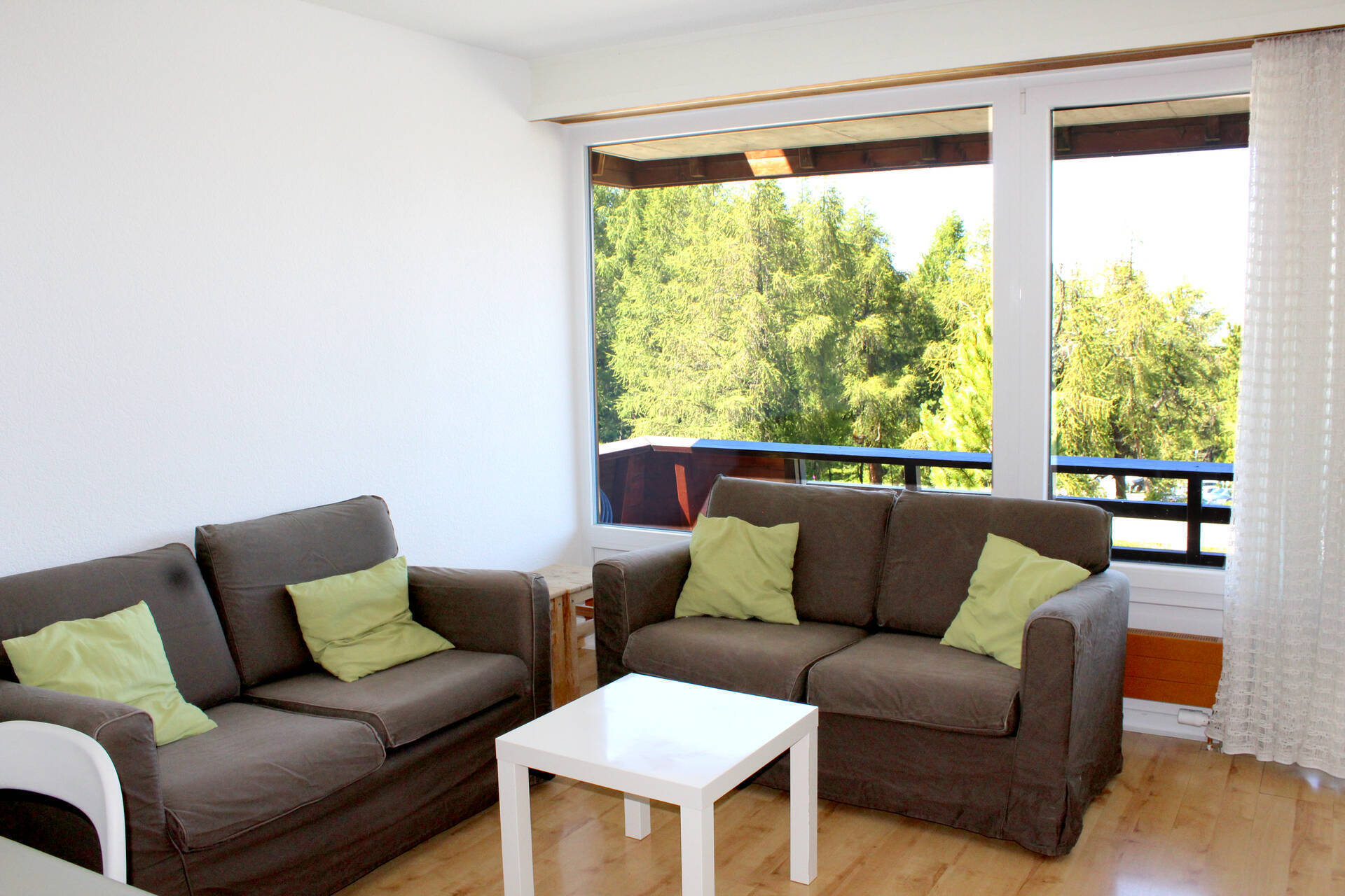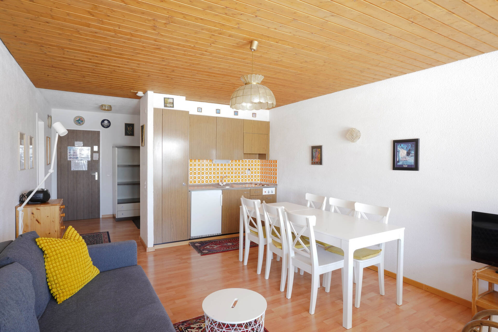 neu3-Zimmer-Wohnung (Typ L) für 5 Personen im 1. Stock des Gebäudes Flache in Thyon 2000. Sie verfügt über eine offene Küche: 4 Glaskeramikkochfelder, Backofen, Geschirrspüler und Kühlschrank mit kleinem Gefrierfach. Das Wohnzimmer, mit TV und WIFI, besteht aus einem Sitzbereich (1 Doppelschlafsofa) und einer Essecke. Schlafzimmer mit Doppelbett (2 Matratzen 2.00 X 0.90) und Kinderzimmer auch mit Doppelbett (2 Matratzen 2.00 X 0.80). Badezimmer: WC, Waschbecken und Badewanne. Balkon in Richtung Norden mit Aussicht auf die Walliser und Berner Alpen. Wohnung MIT Teppichboden. Tiere nicht erlaubt.