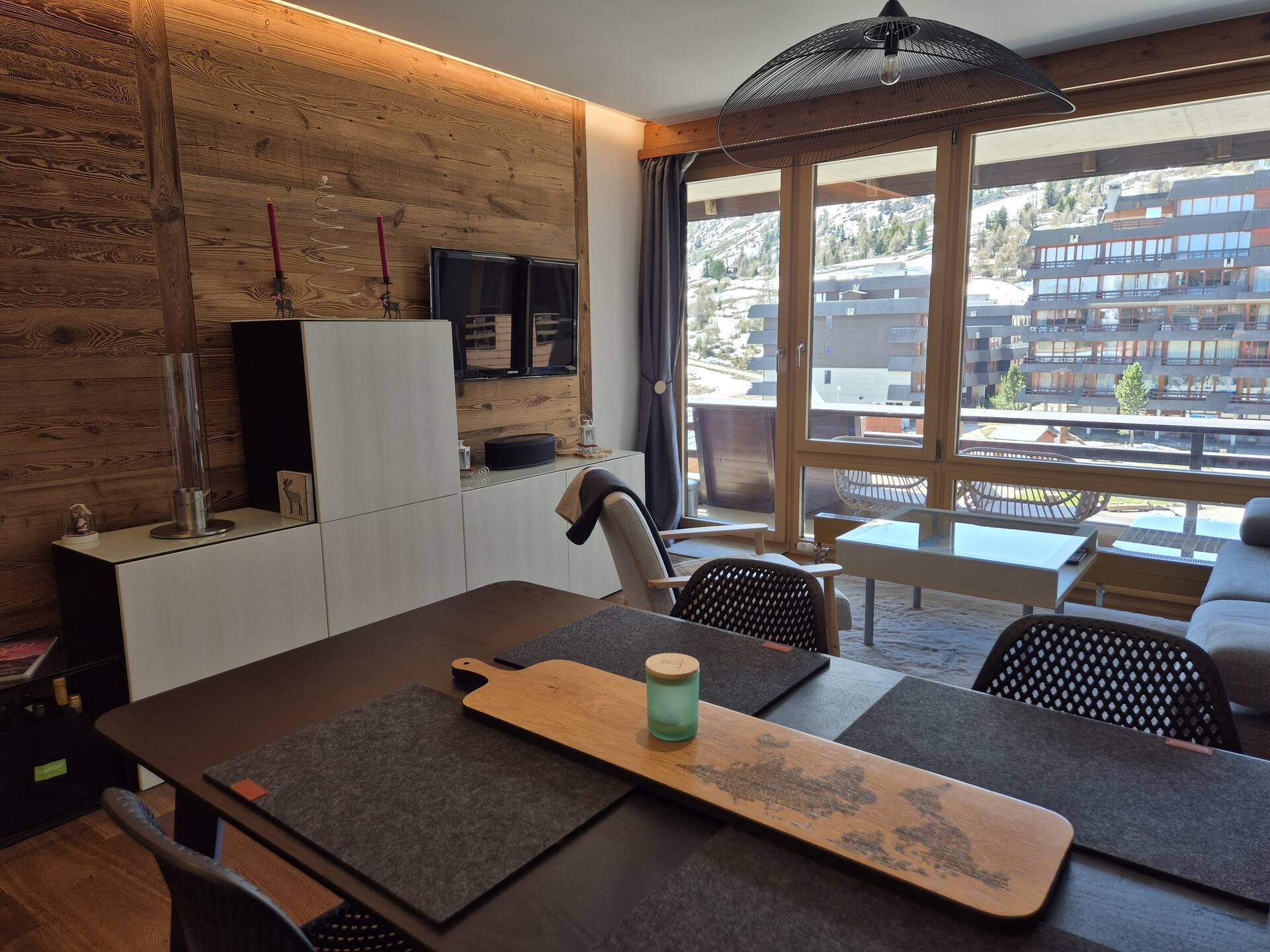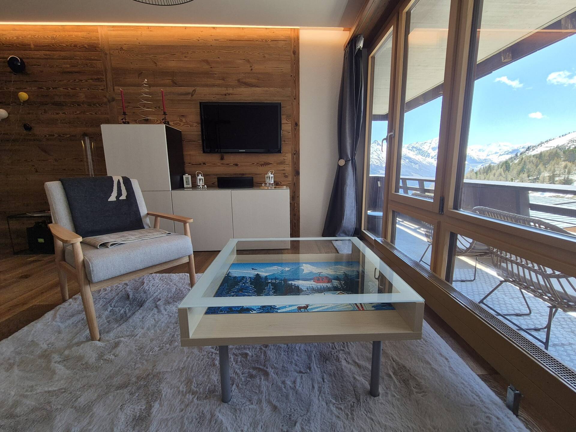NewThe flat is a lovely 2-room (type I) apartment for 2 people ONLY (no exceptions will be tolerated), located on the 3rd floor of the building Flache in Thyon 2000. It has an open-plan kitchen: 4 ceramic hobs, oven, dishwasher and large fridge with freezer. A Nespresso coffee machine is available, as well as fondue and raclette equipment. The living room, with TV and WIFI, has a comfortable sofa and armchair. Bedroom with double bed (200x180cm). Bathroom: WC, washbasin and bathtub. South-facing balcony with views over the central square of Thyon 2000, the mountain peaks and matterhorn. Flat WITH carpet. No pets allowed.
