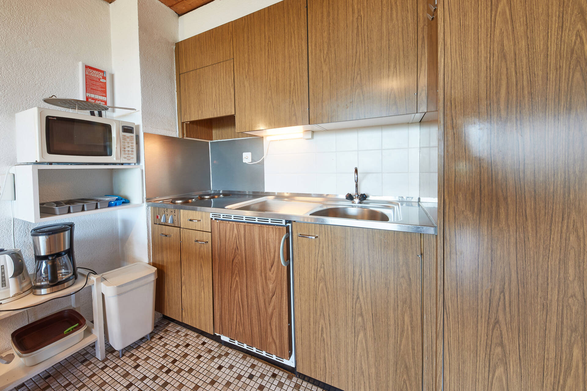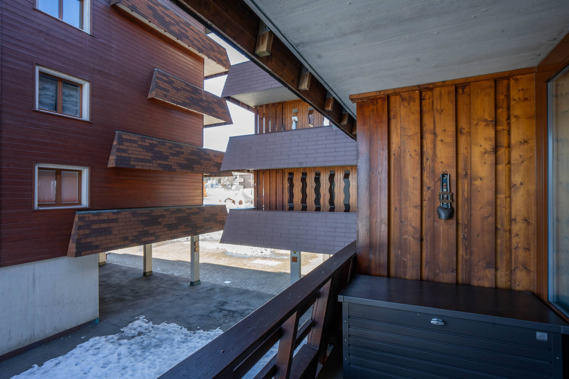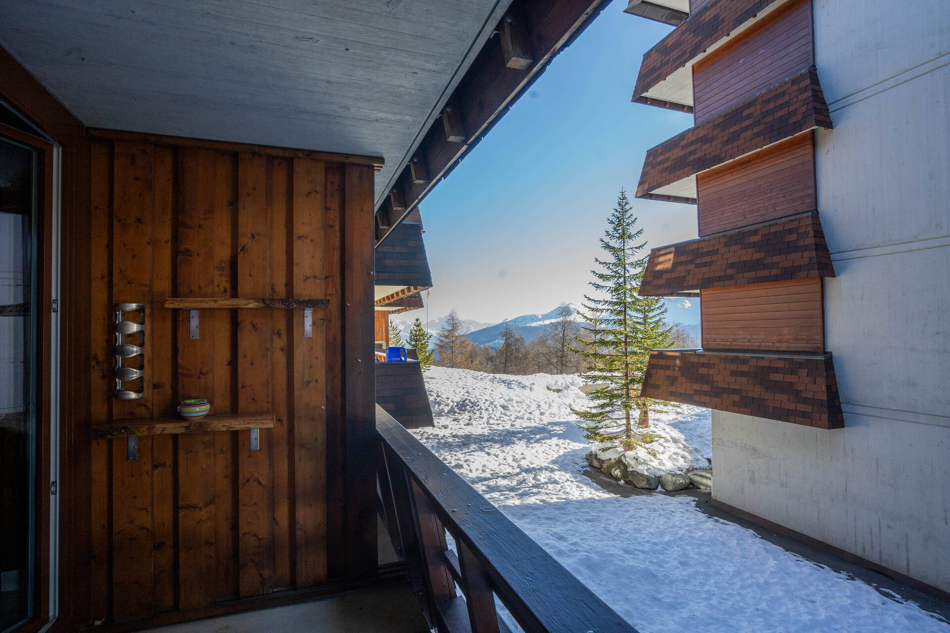 NewStudio (type E) for 3 people on the 1st floor of the building Blava (entrance A) in Thyon 2000. It has an open kitchen: 2 ceramic hobs, oven and fridge (with a small freezer). The living room, with TV and DVD, is composed of a lounge (one single sofa bed 2.00 X 1.20 and two single pull-out beds side to side 2.00 X 0.90) and a dining area. Bathroom: WC, sink and shower. Eastside balcony with view on the Val d'Hérens. Apartment WITHOUT carpet. Pets not allowed.