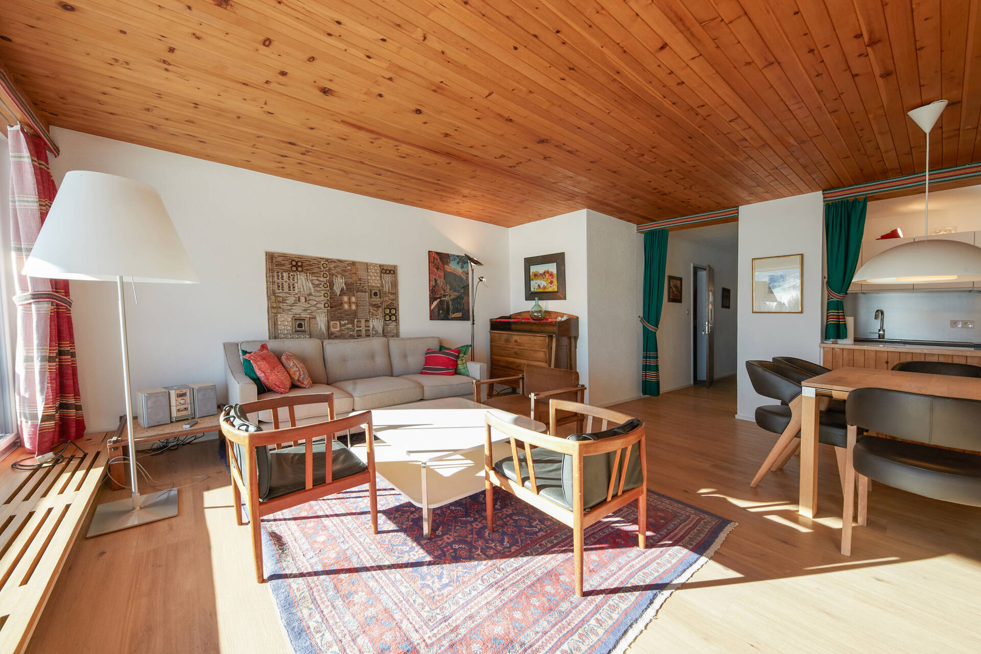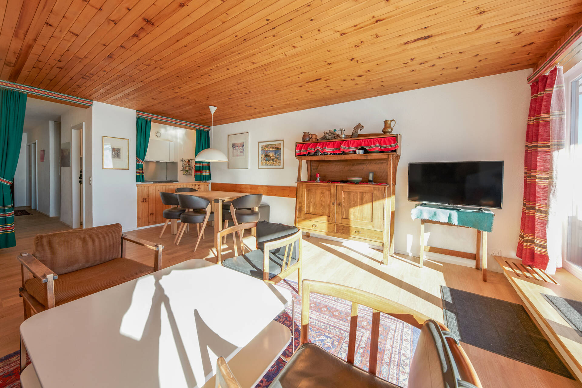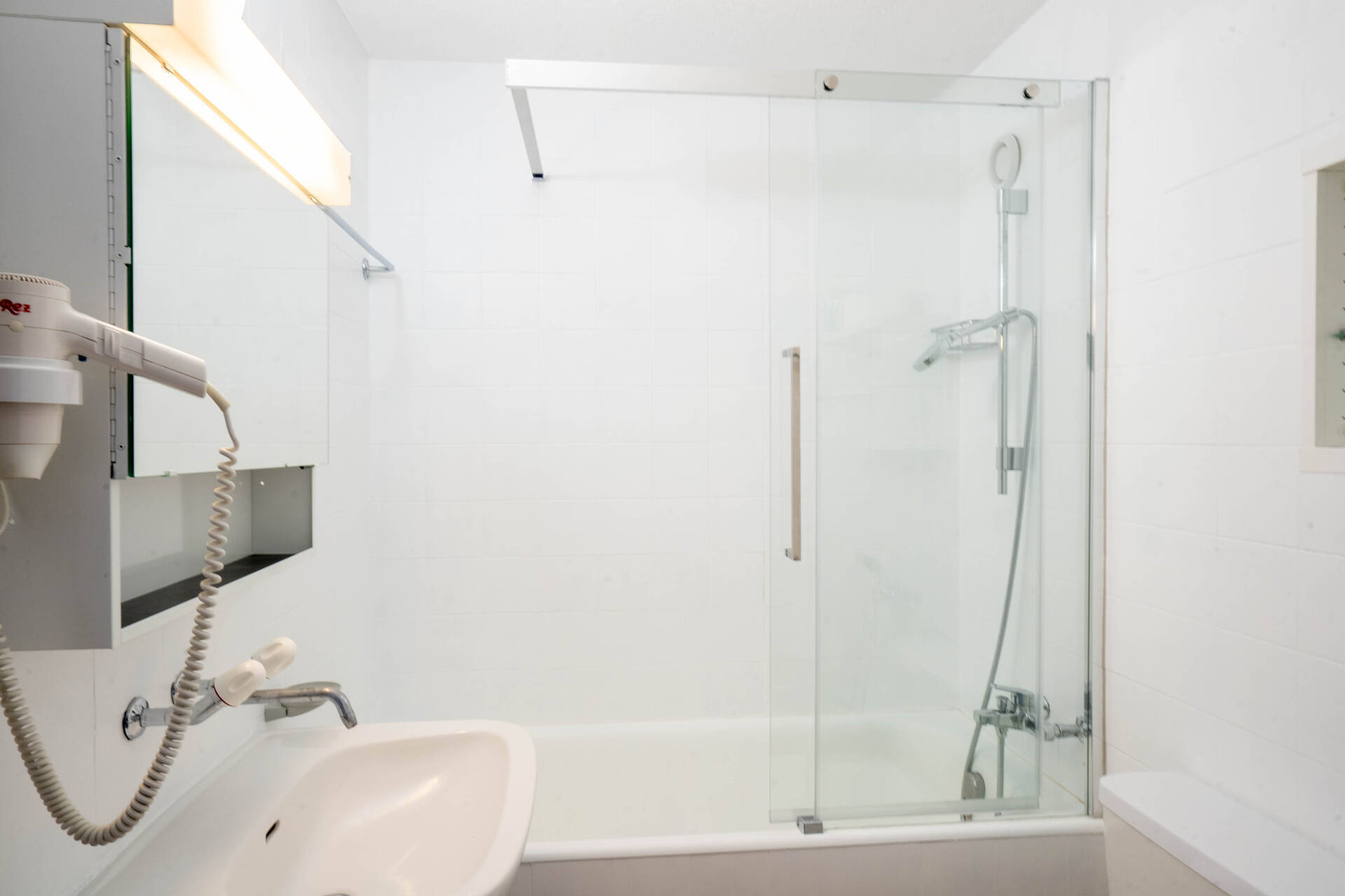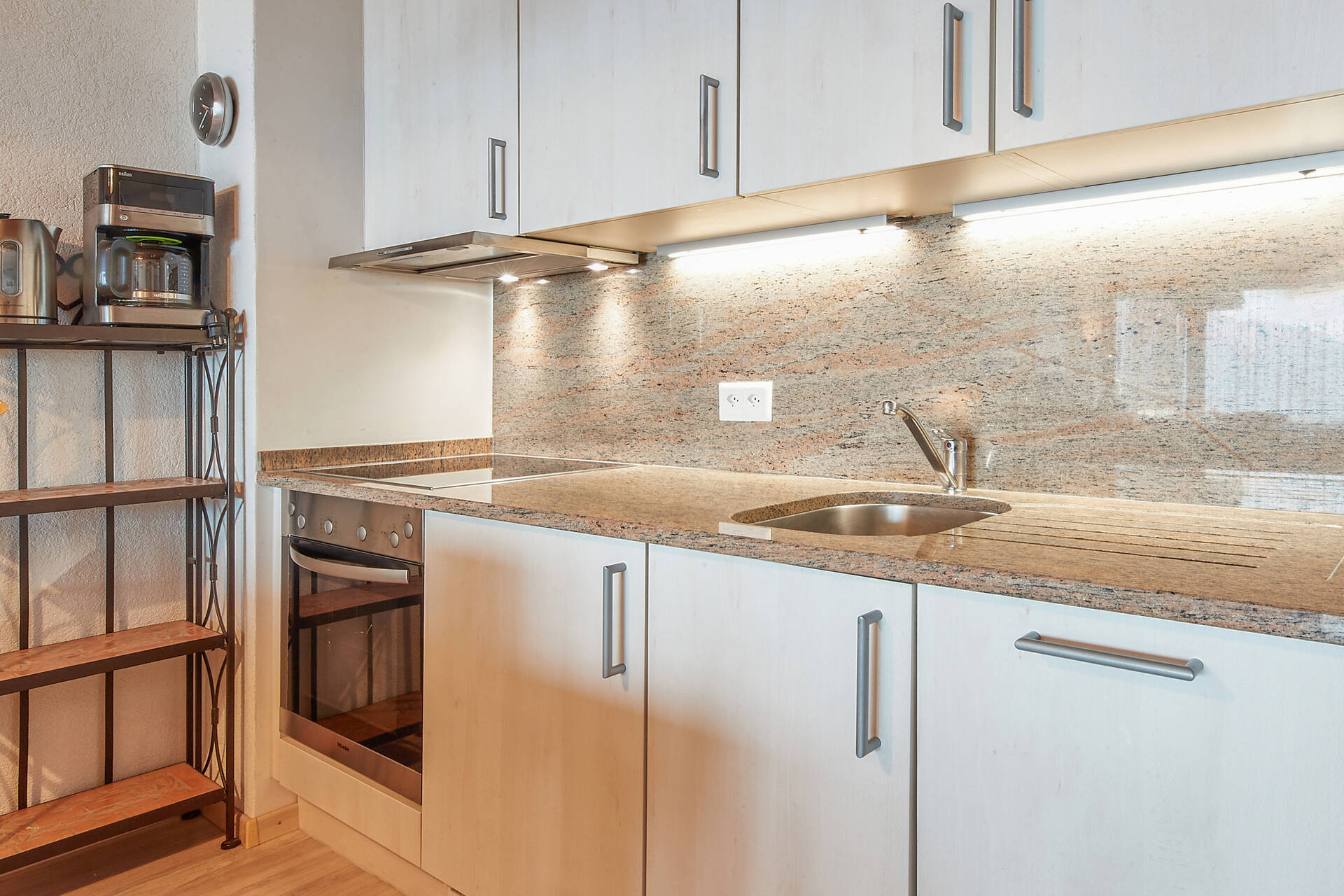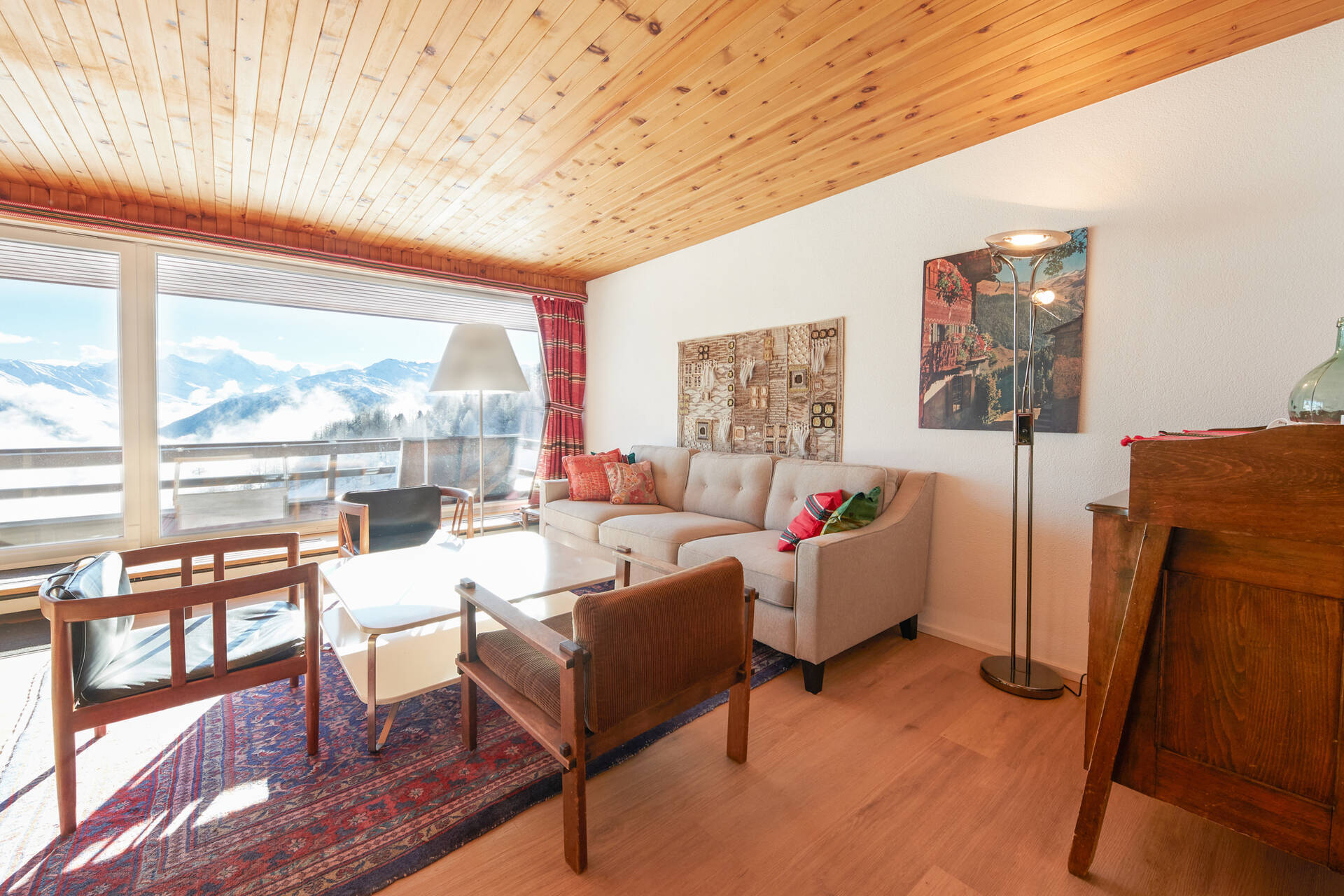 New2.5-rooms apartment (type I) for 4 people on the 4th floor of the building Rawyl in Thyon 2000. It has an open kitchen: 4 ceramic hobs, oven, dishwasher and fridge (with a small freezer). The living room, with TV and WIFI, is composed of a lounge (2 sofas) and a dining area. Bedroom with TV (access through the children room) with a double bed (2 mattresses 2.00 X 0.90) and children room with a bunk bed (1.90 X 0.80). Bathroom: WC, sink and bath. Eastside balcony with view on the main square of Thyon 2000 and the Val d'Hérens. Apartment WITHOUT carpet. Pets not allowed.