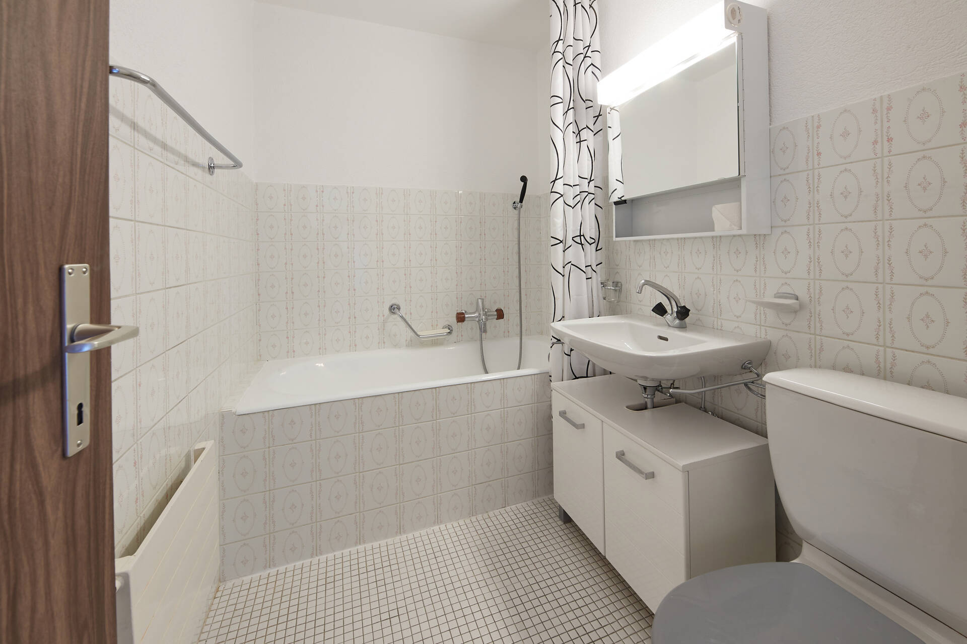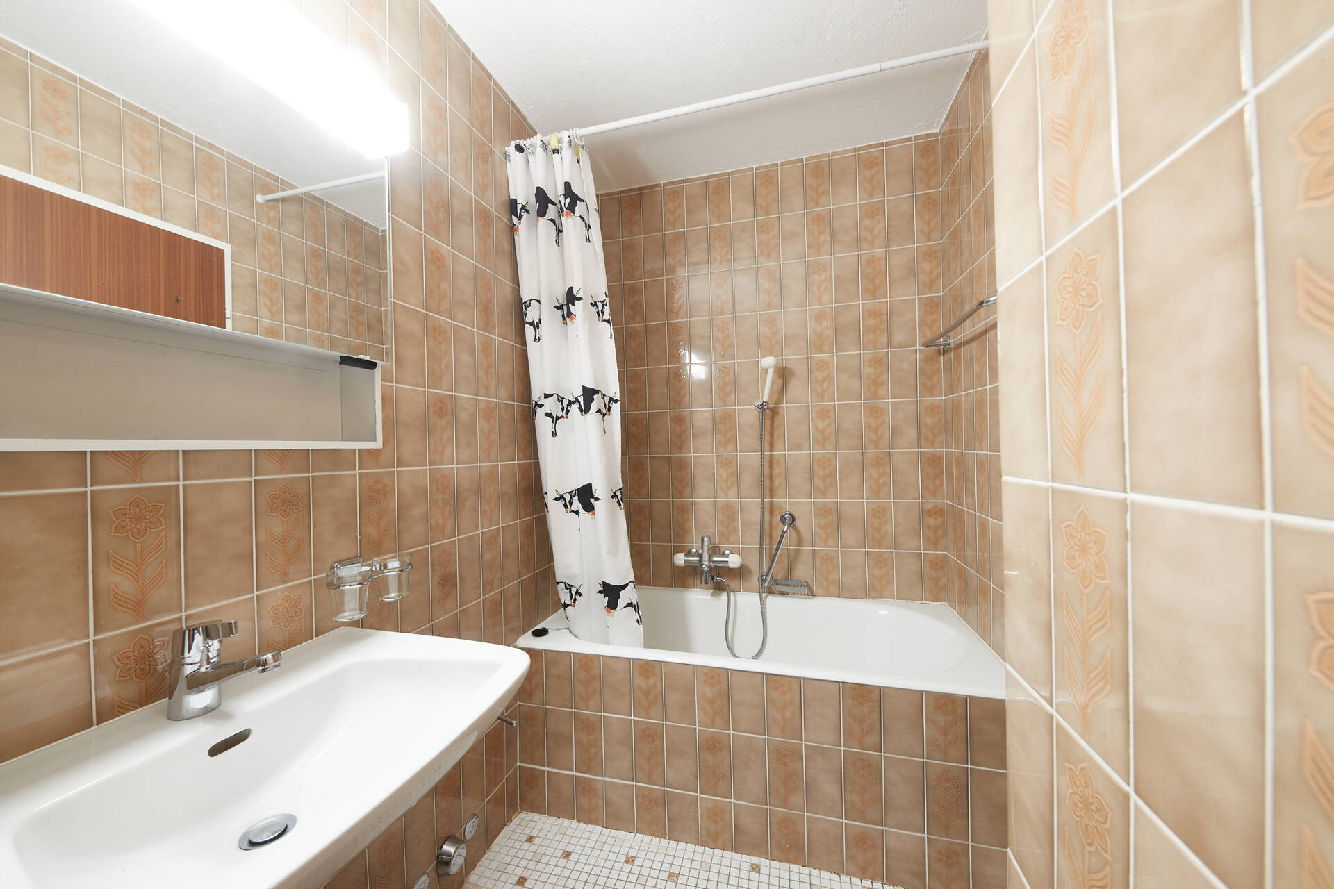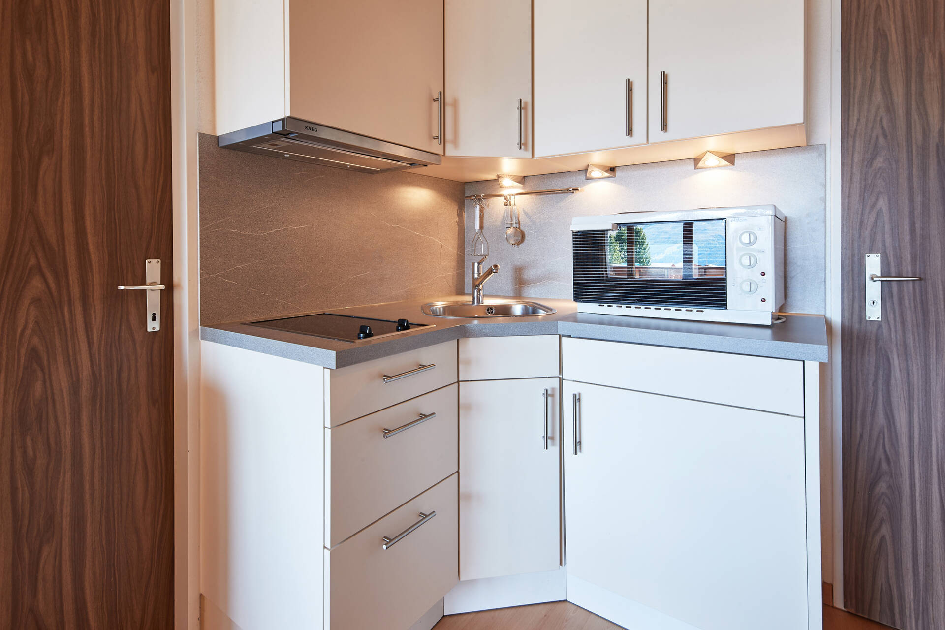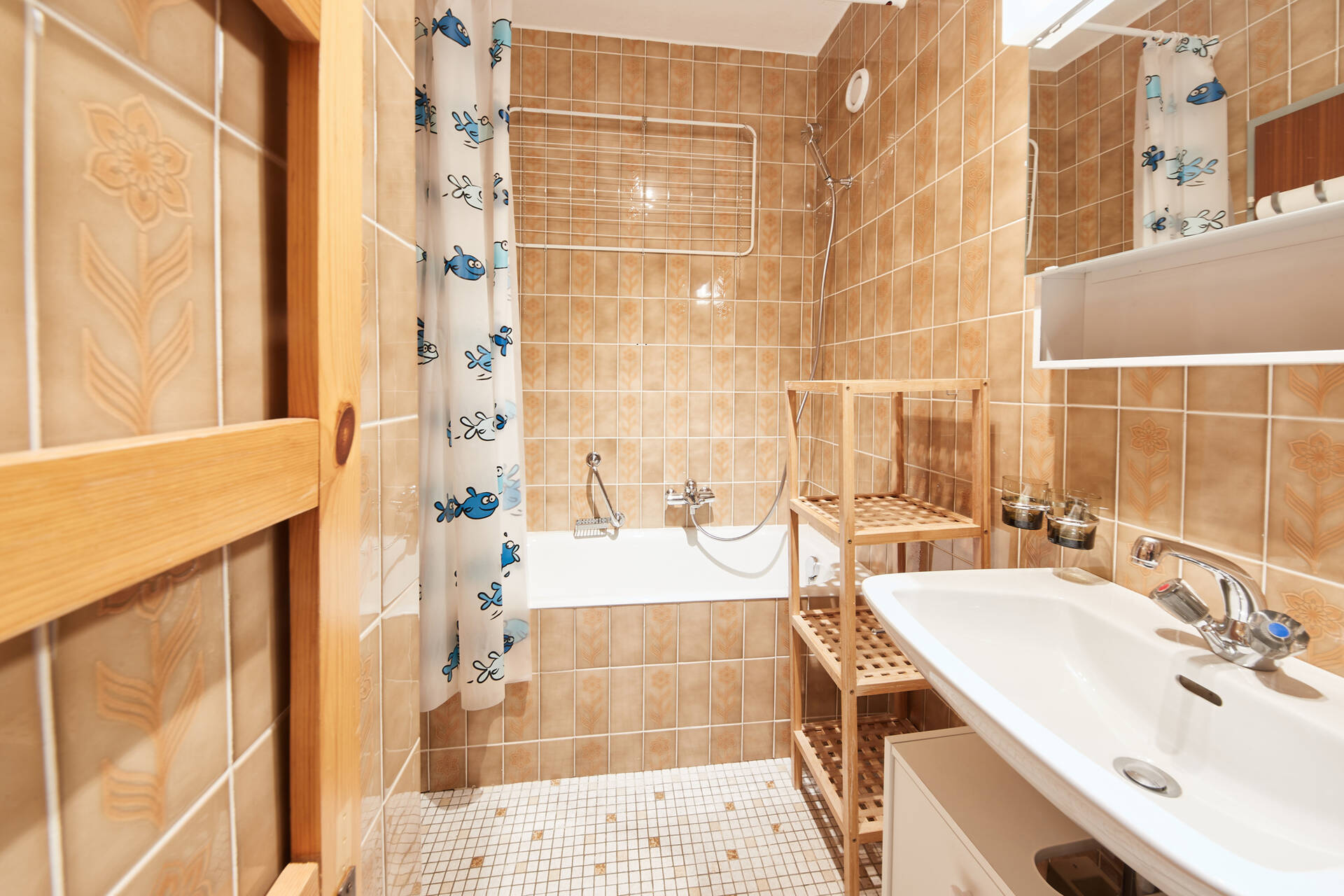 Studio (type E) for 4 people on the 1st floor of the building Greppon in Thyon 2000. It has an open kitchen: 2 ceramic hobs, microwave, dishwasher and fride (with a small freezer). The living room, with TV, is composed of a lounge (1 double sofa bed 1.90 X 1.40 and 1 fold out bunk bed 1.90 X 0.90) and a dining area. Bathroom: WC, sink and bath. Balcony with view on the Valais and Vaud Alps. Apartment WITHOUT carpet. Pets not allowed.
