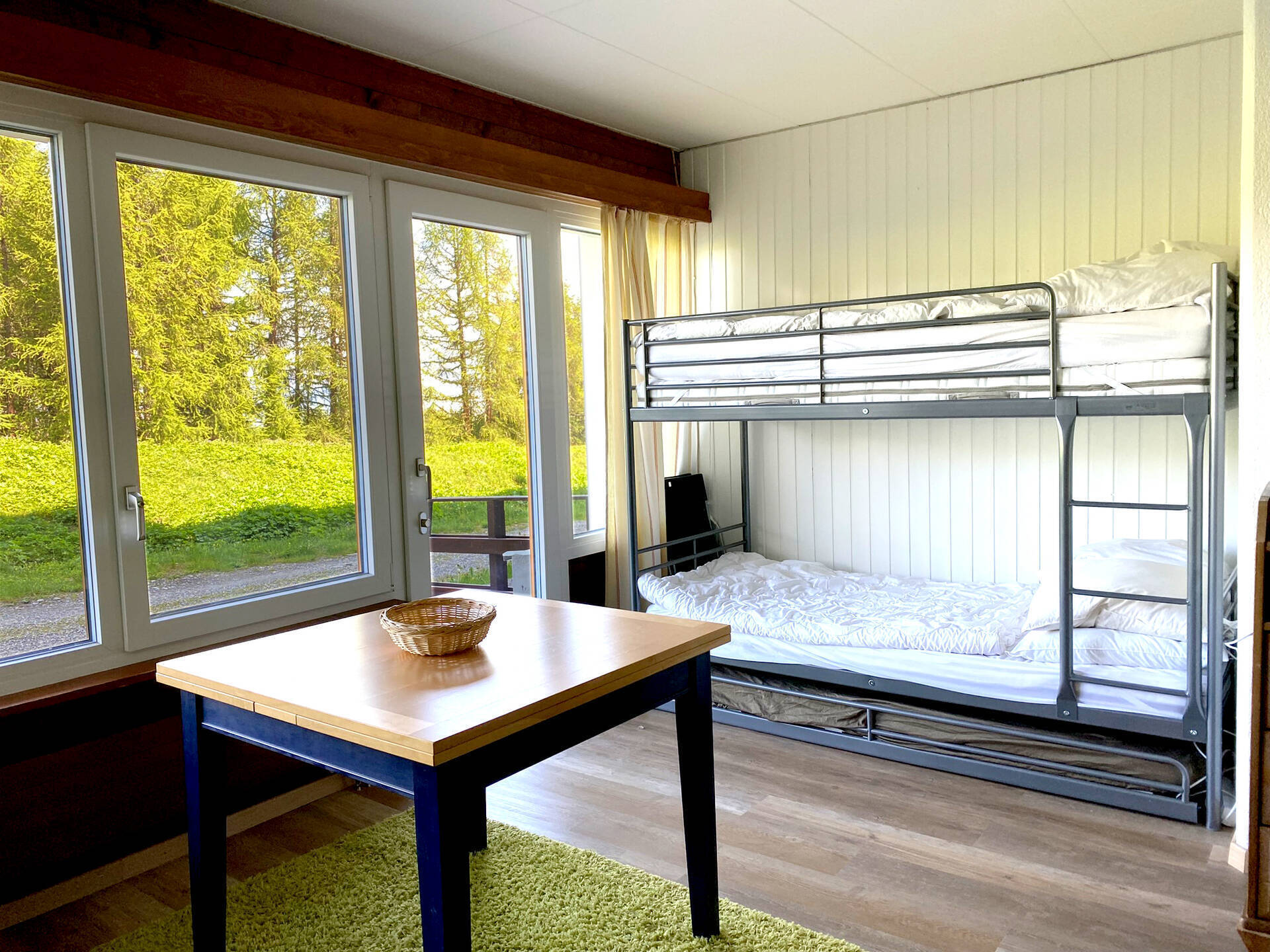 NewCharming studio for 4 people (type E) on the ground floor of the building Dixence in Thyon 2000. It has an open kitchen: 4 ceramic hobs, oven, dishwasher, fridge (with small freezer) and dining area. The living room, with TV, is composed of a single sofa bed (1600 X 200) and a bunk bed (90 X 200). Bathroom: WC, sink and bath. North-East side terrace with view of the forest. Apartment WITHOUT carpet.