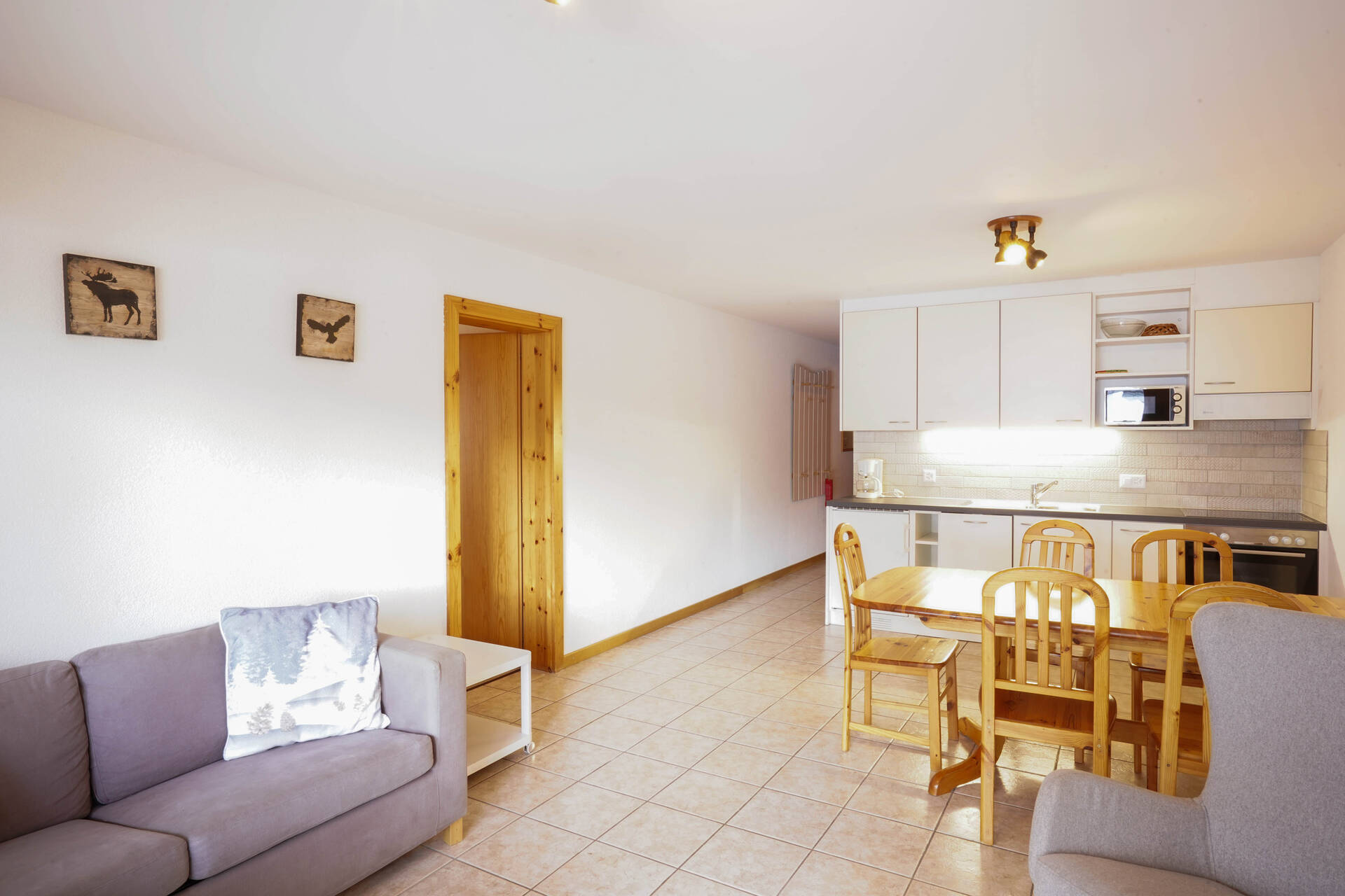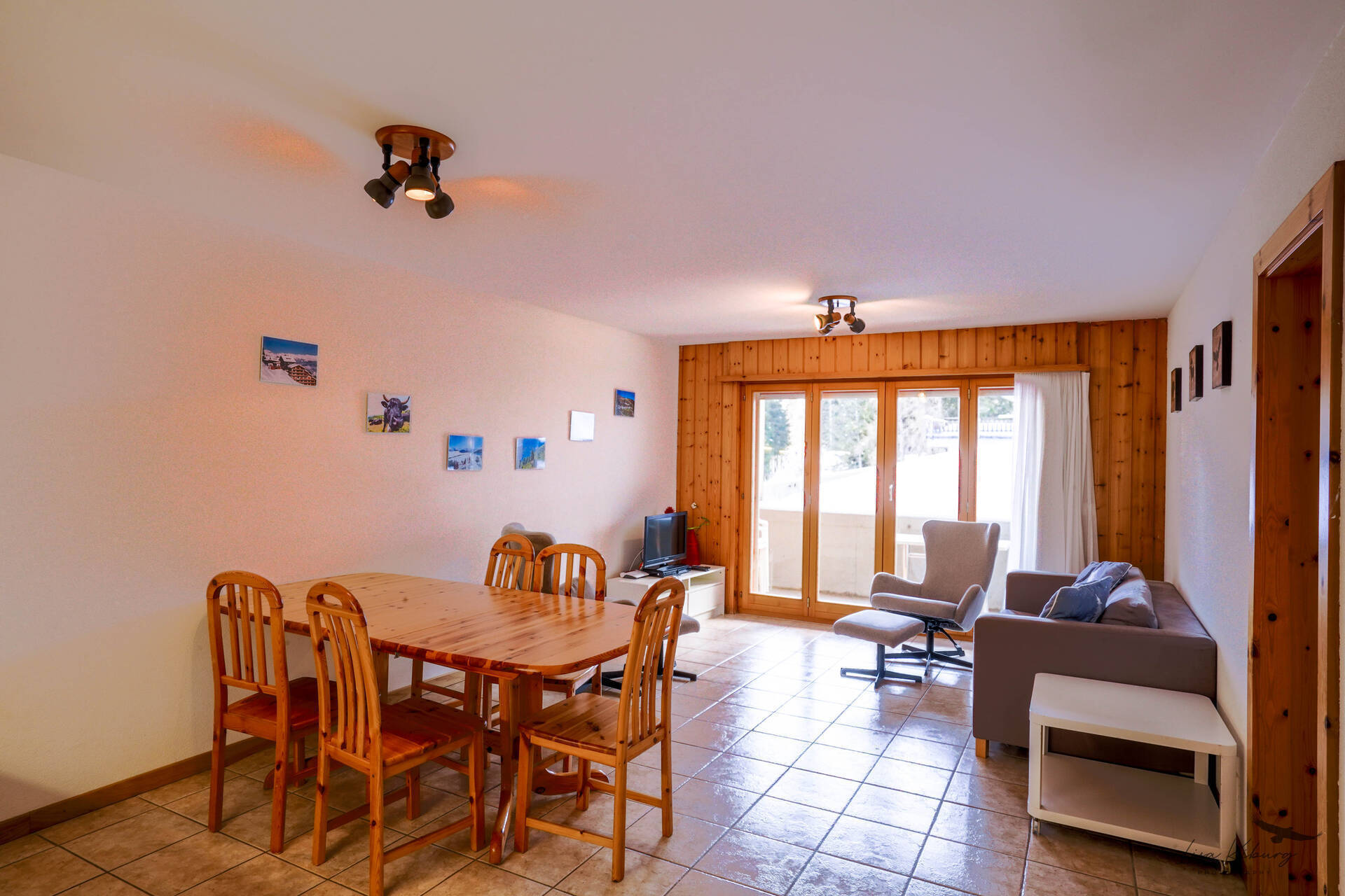 The flat is a renovated 3 room apartment for 6 people, located in the 1st basement of the Sérandes building in Les Collons.