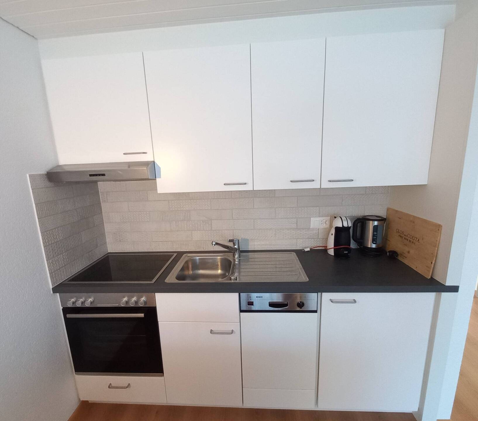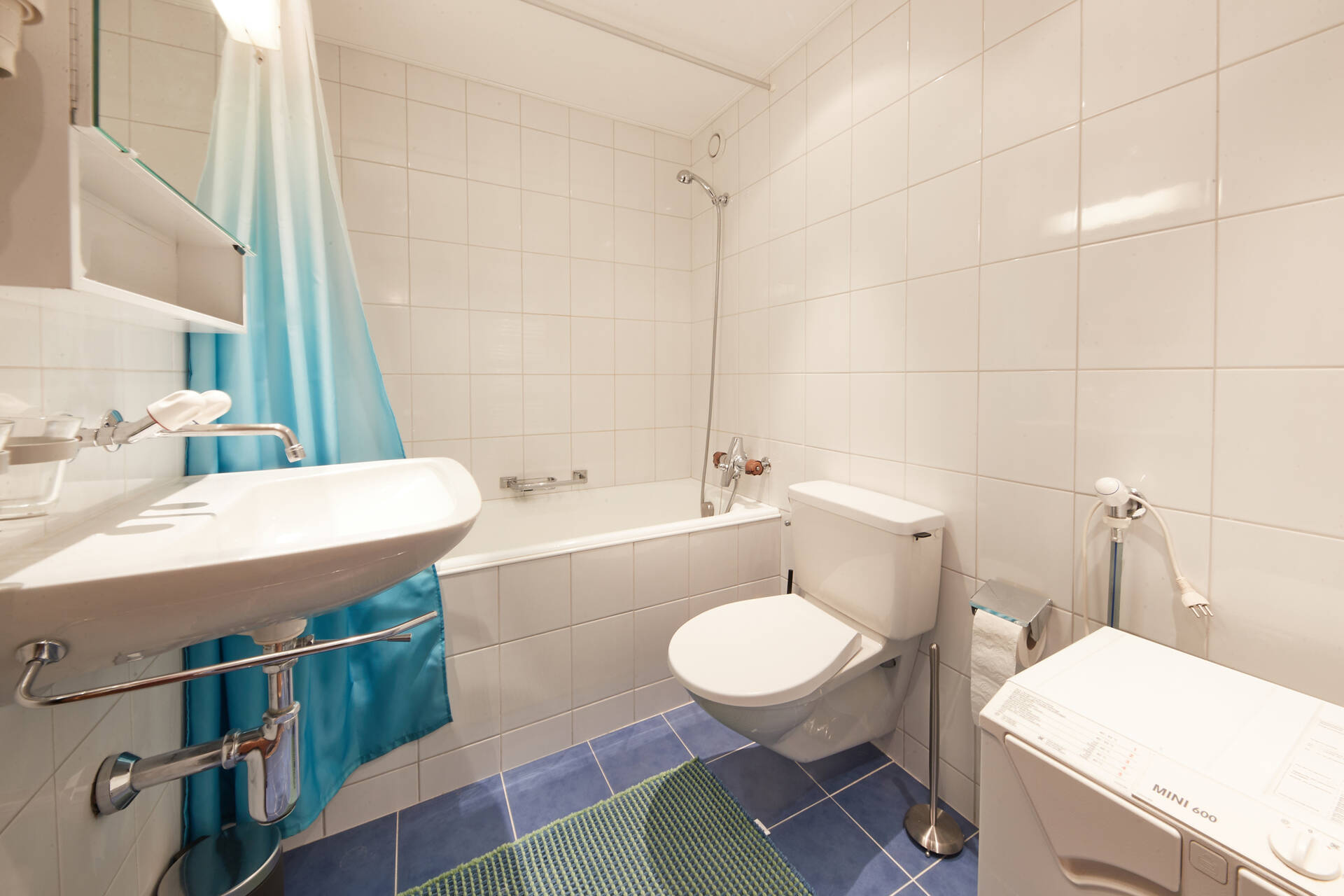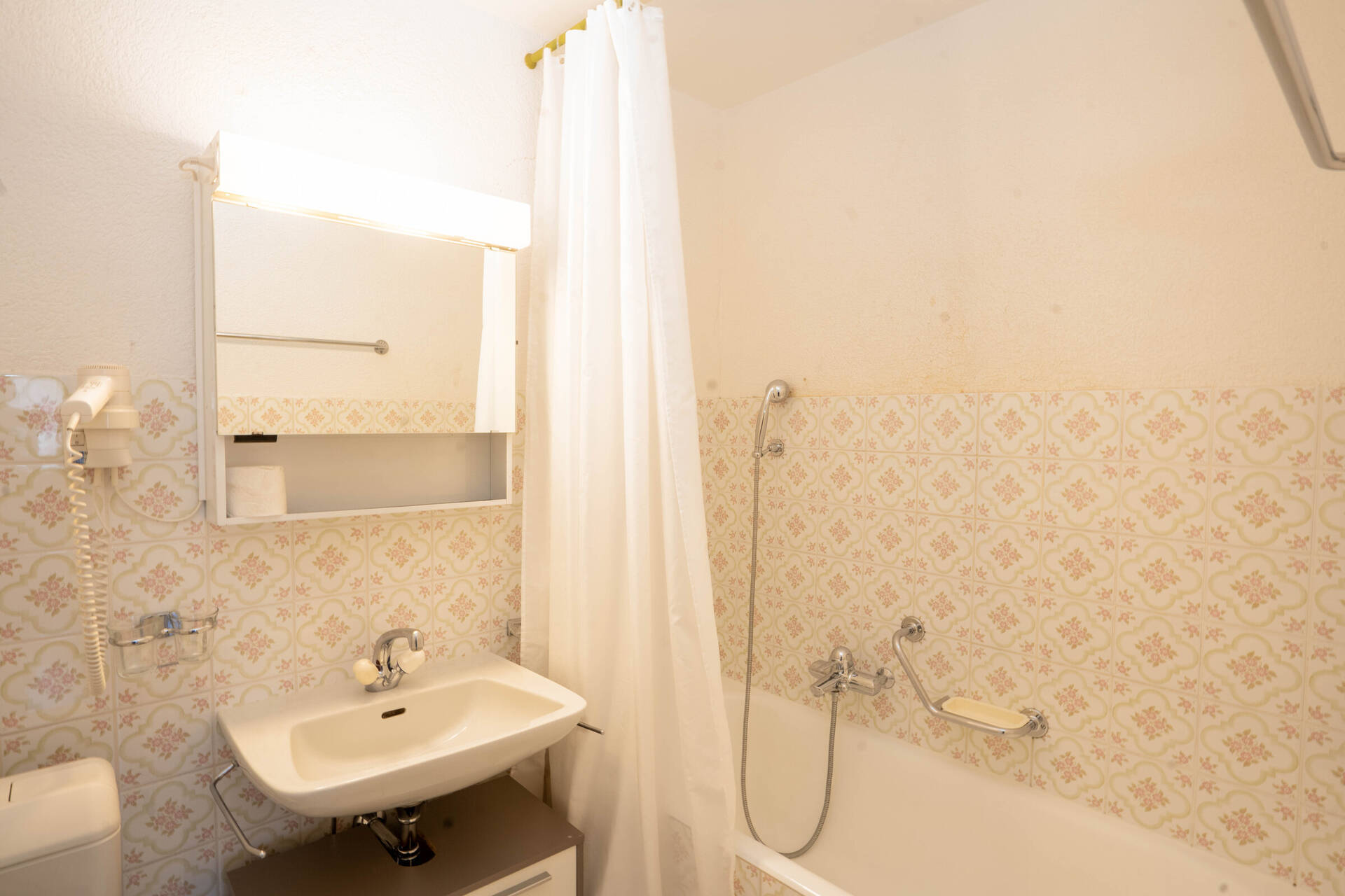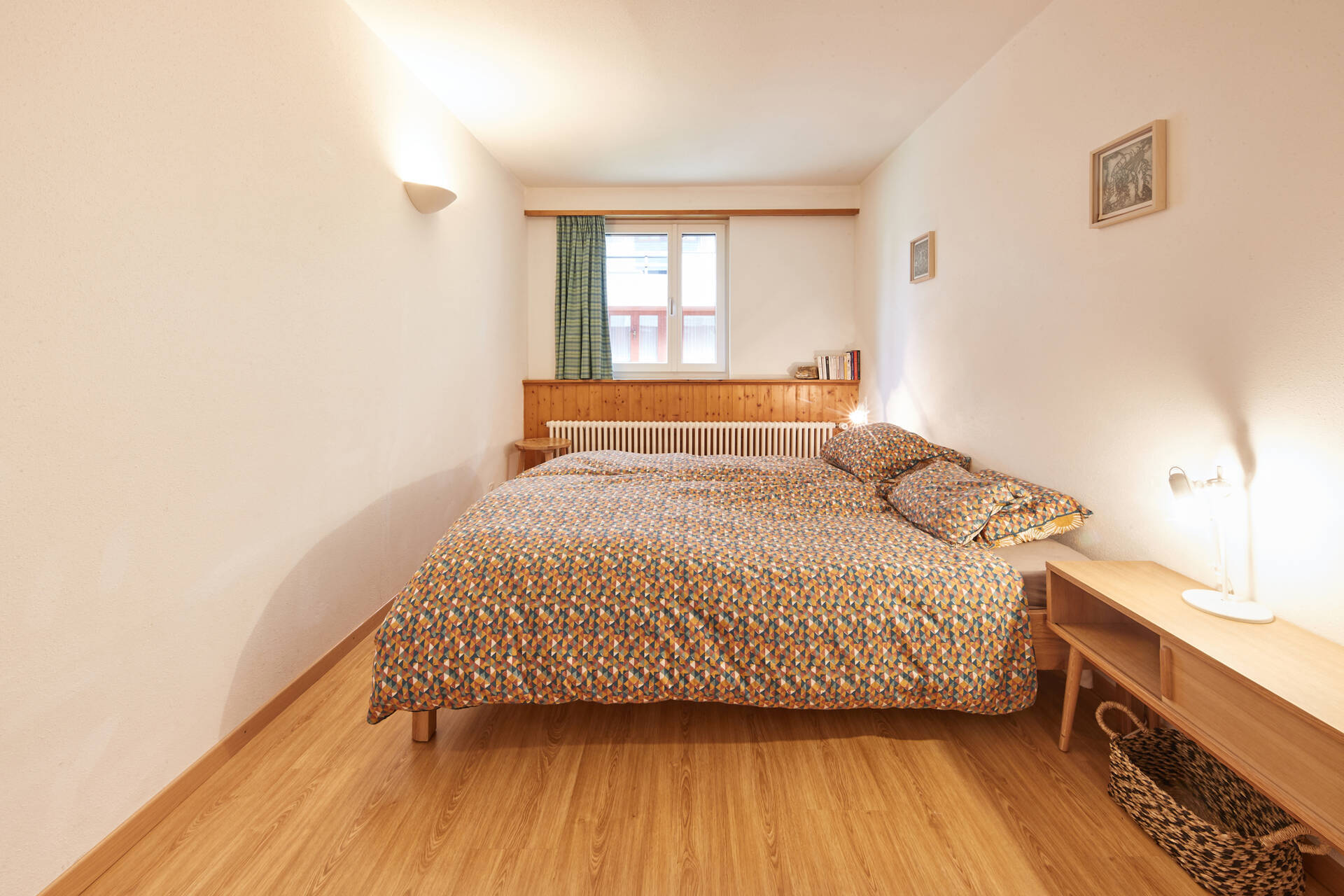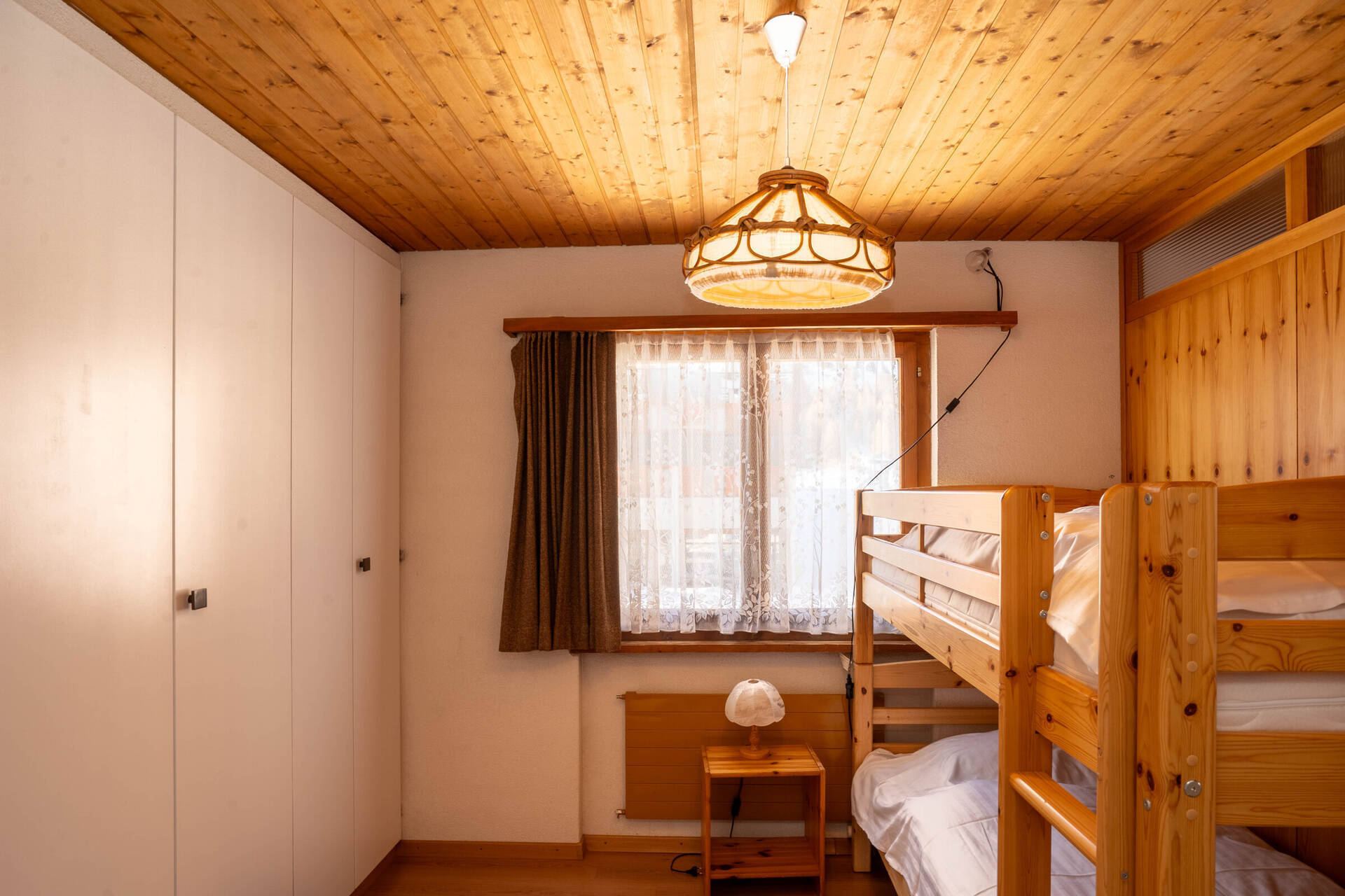 3-rooms-apartment (type K) for 6 people on the 1st floor of the building Essert in Thyon 2000. It has an open kitchen: 4 ceramic hobs, oven, dishwasher and fridge (with a small freezer). The living room, with TV, is composed of a lounge (1 double sofa bed 2.00 X 1.60) and a dining area. Bedroom with a double bed (2 mattresses, 2.00 X 1.00) and children room with a bunk bed (1.90 X 0.90). Bathroom: WC, sink and bath. Westside balcony with view on the main square of Thyon 2000. Apartment WITHOUT carpet. Pets allowed. Important information: Renovated object for 01.12.2022