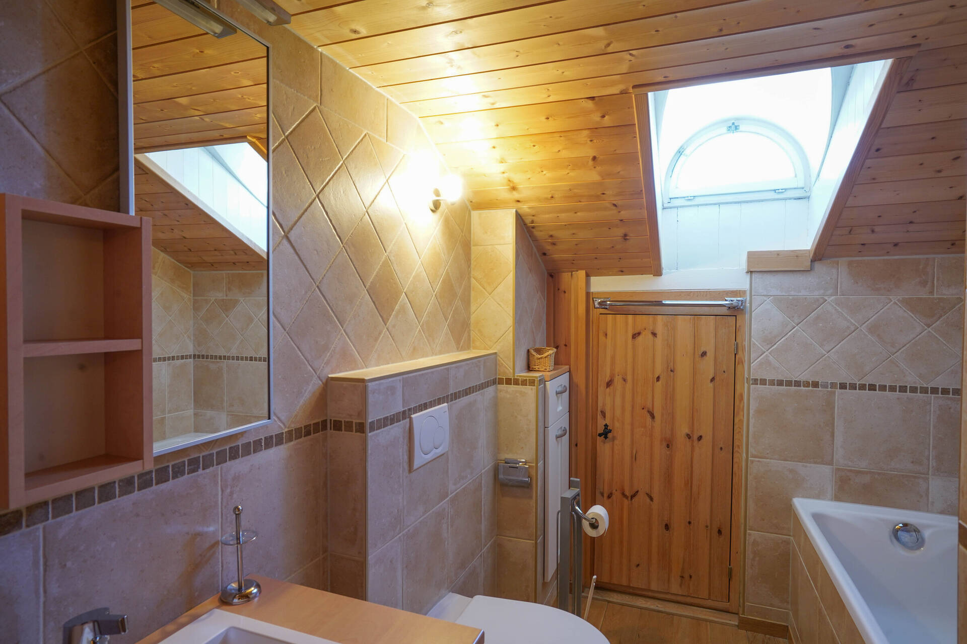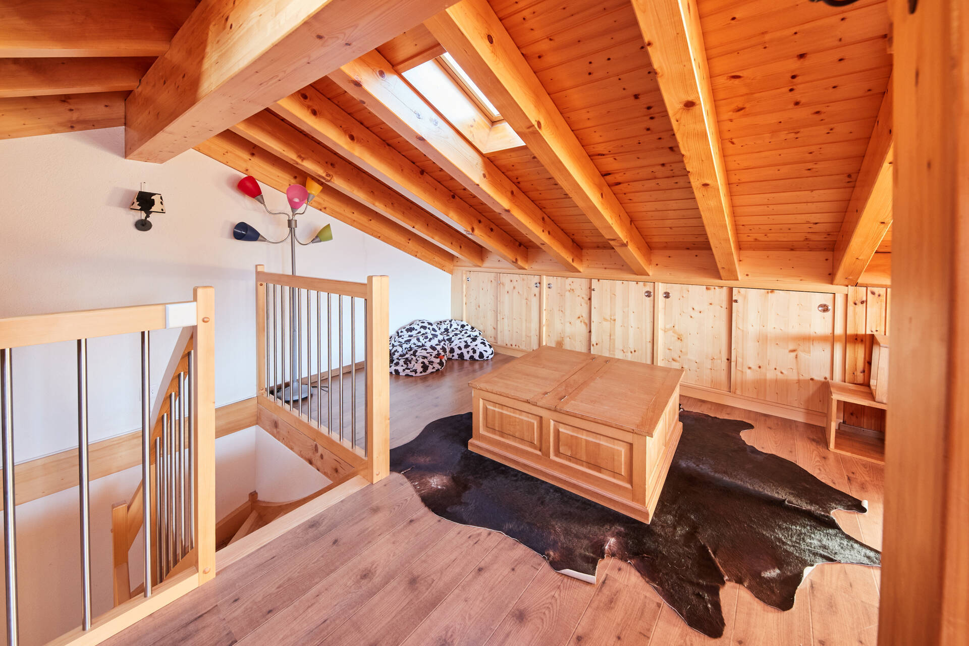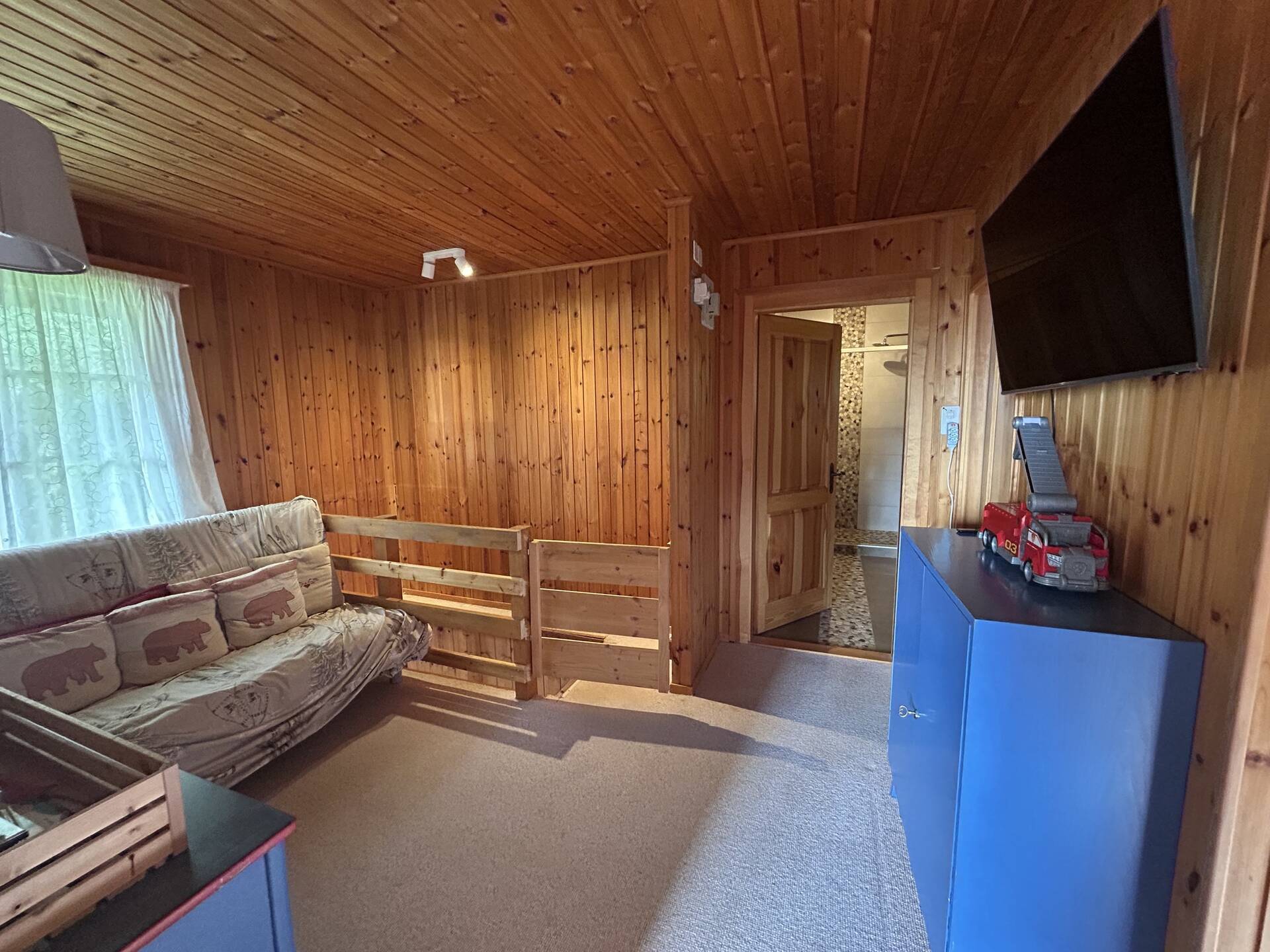 Upstairs, there is a small mezzanine with a sofa, cable TV and WiFi.