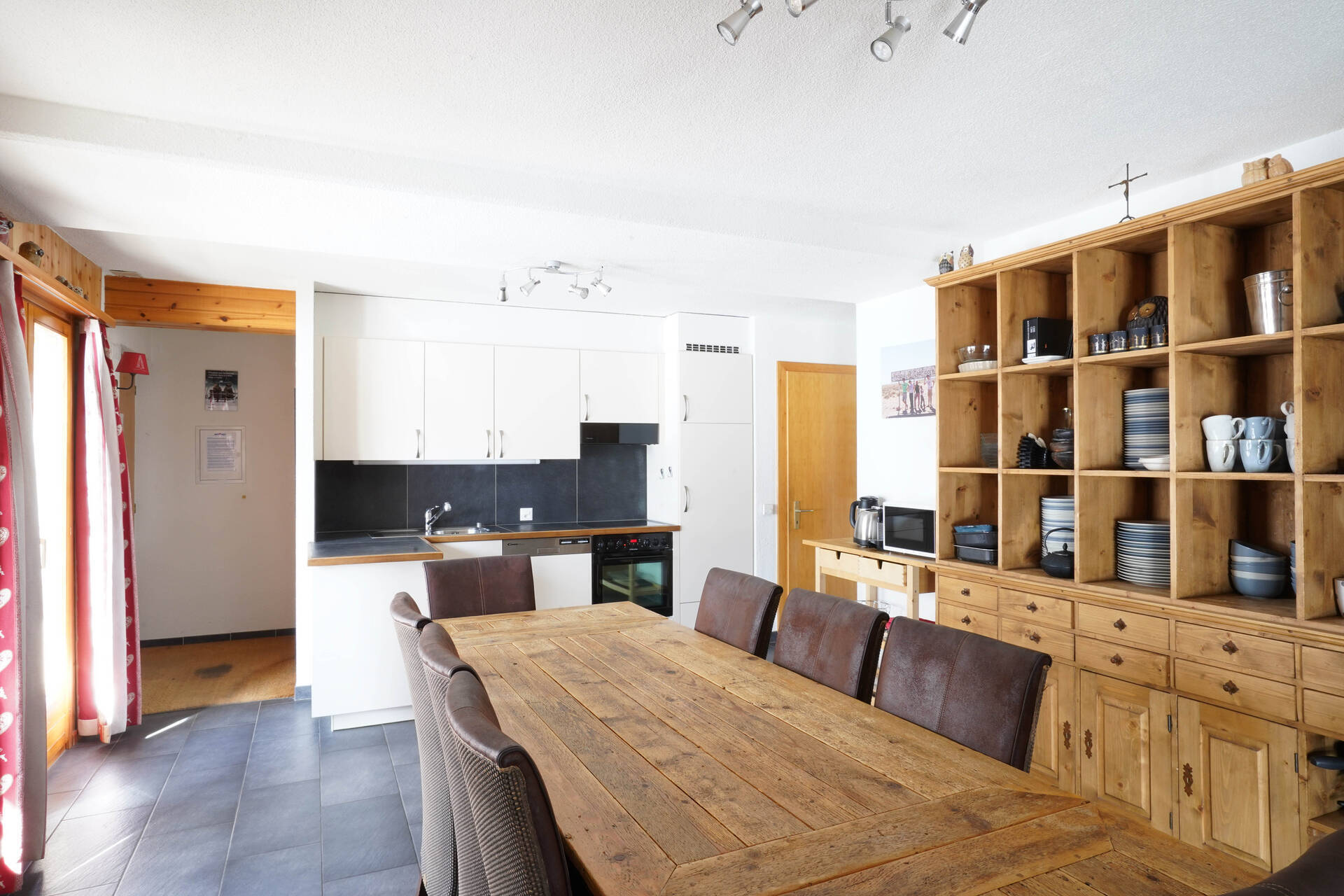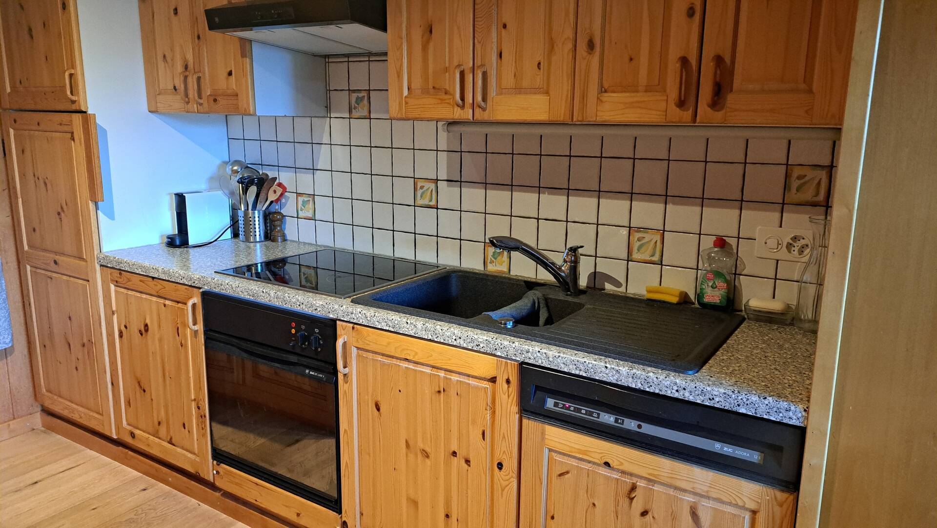 The kitchen has 4 ceramic hobs, an oven, a dishwasher and a large fridge with freezer compartment. It is fully equipped with a kettle, toaster, Nespresso coffee machine, etc. There is a large dining table with plenty of chairs.