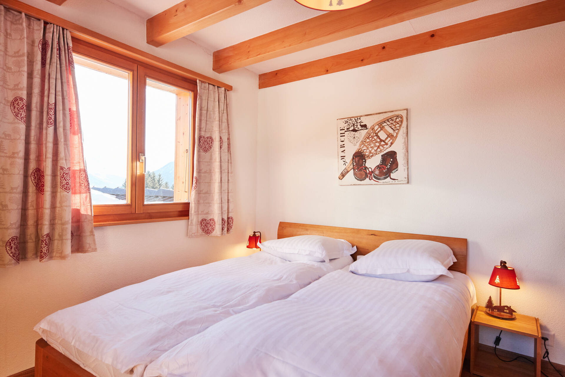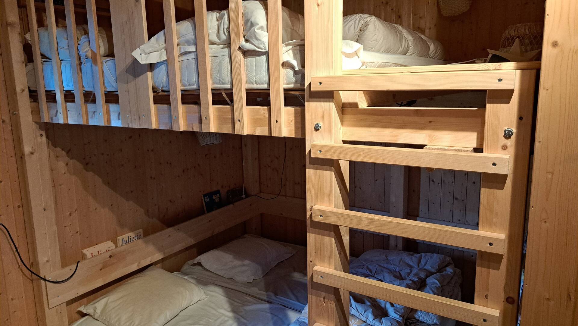 Bedroom 1 (adjoining bathroom 1) : one double bunk bed (bottom: two 90 x 200 mattresses and top: 180 x 200). Bedroom 2 : one double bed (140 x 200). Bedroom 3 : one double bed (2x 90 x 200 mattresses). Bedroom 4 : one double bed (140 x 200).