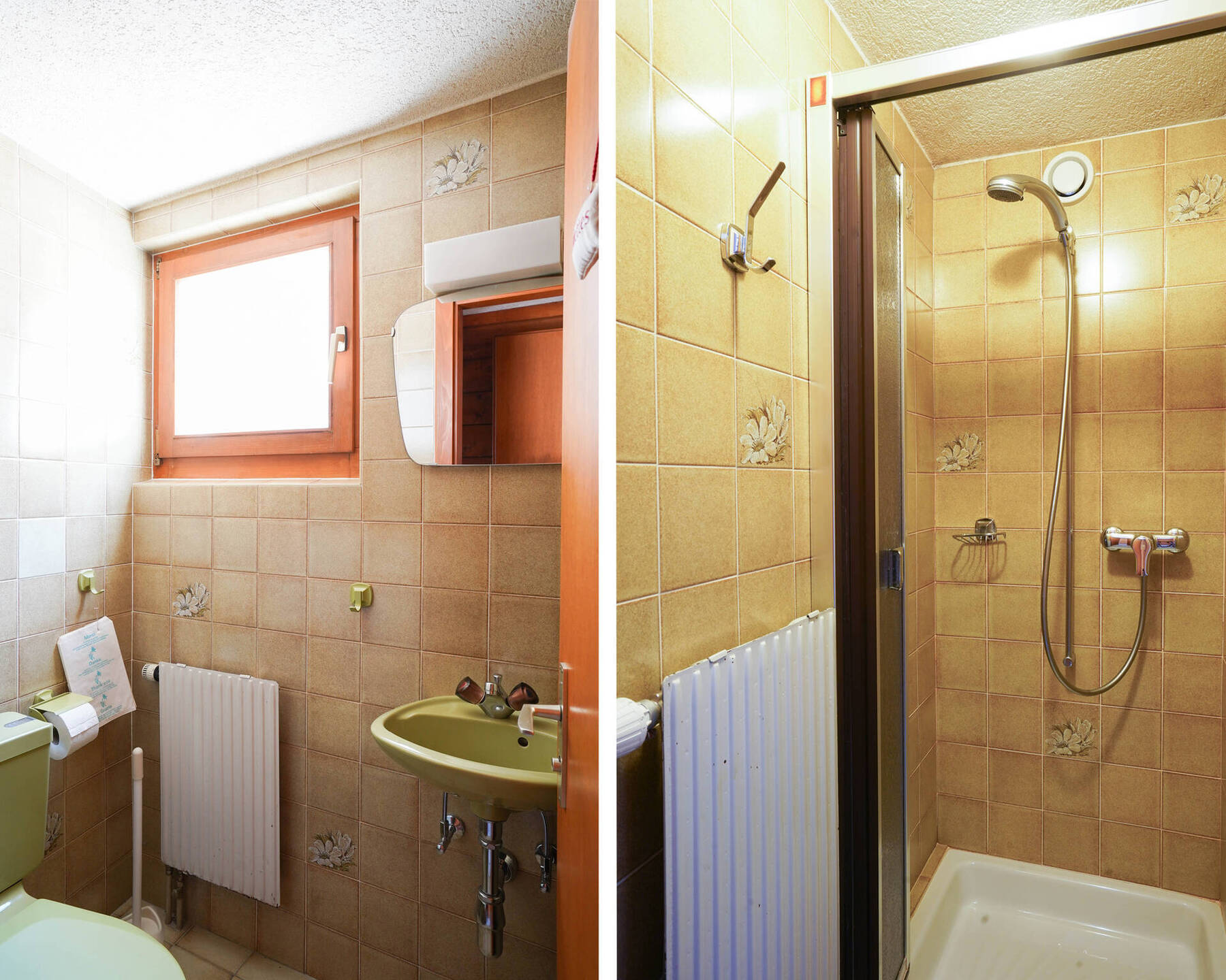 Bathroom on the first floor : washbasin and shower (connecting to bedroom 1).