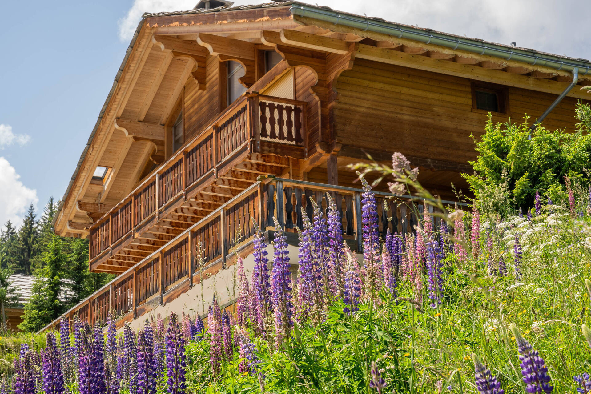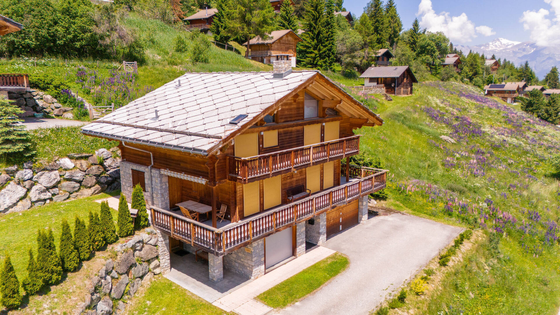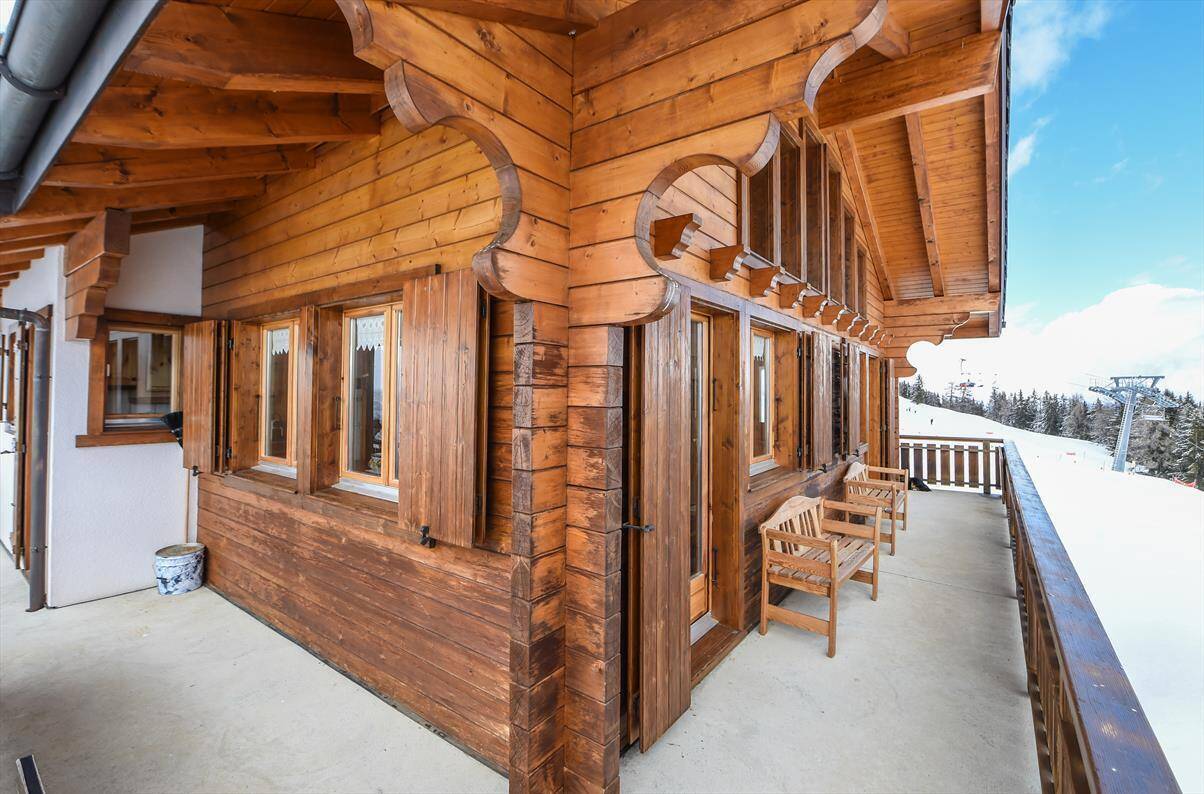 South-east oriented terrace and balcony, parking spot outside approximately 100 meters far from the chalet, garage.