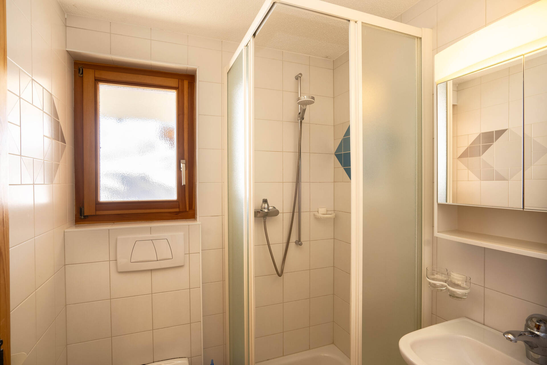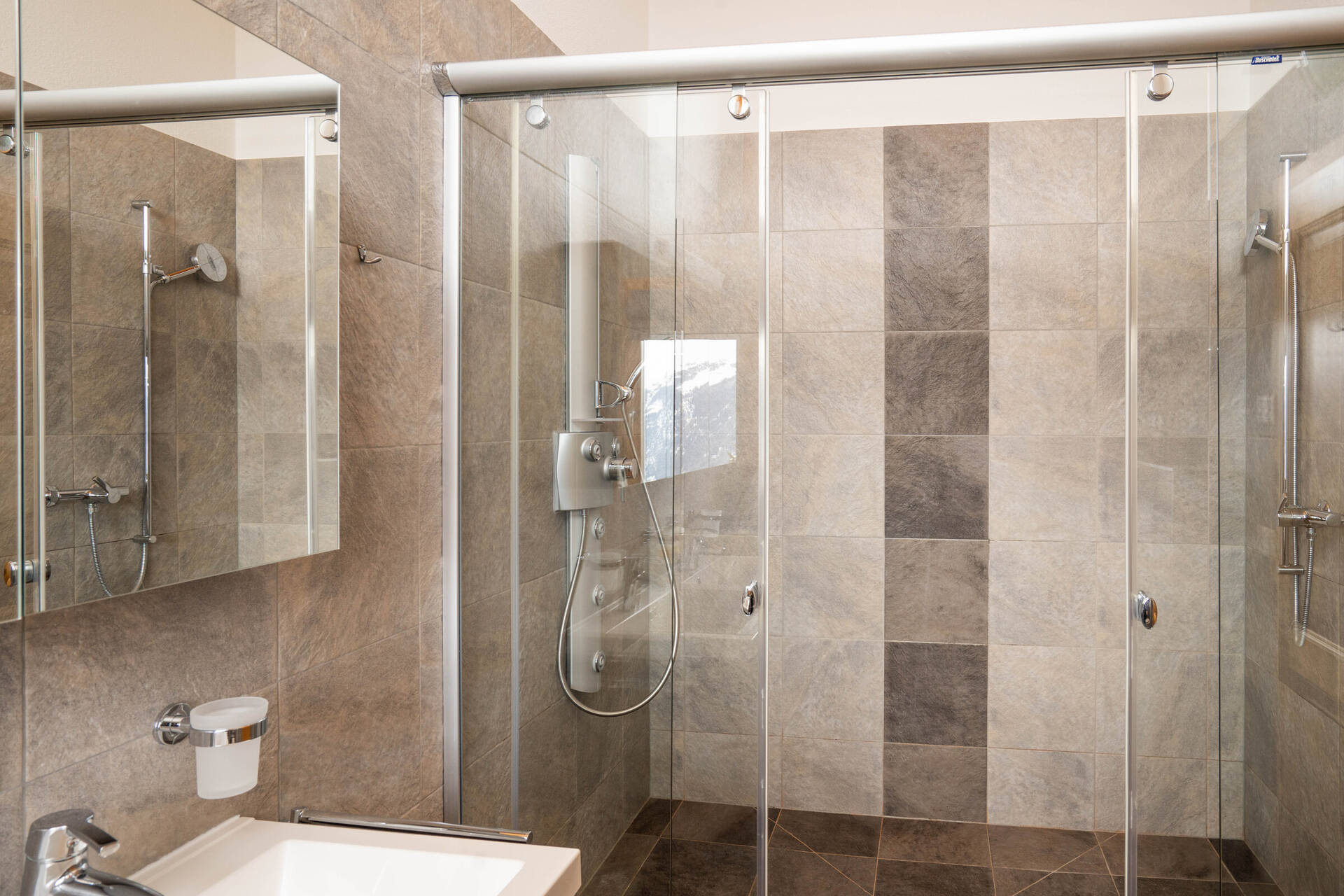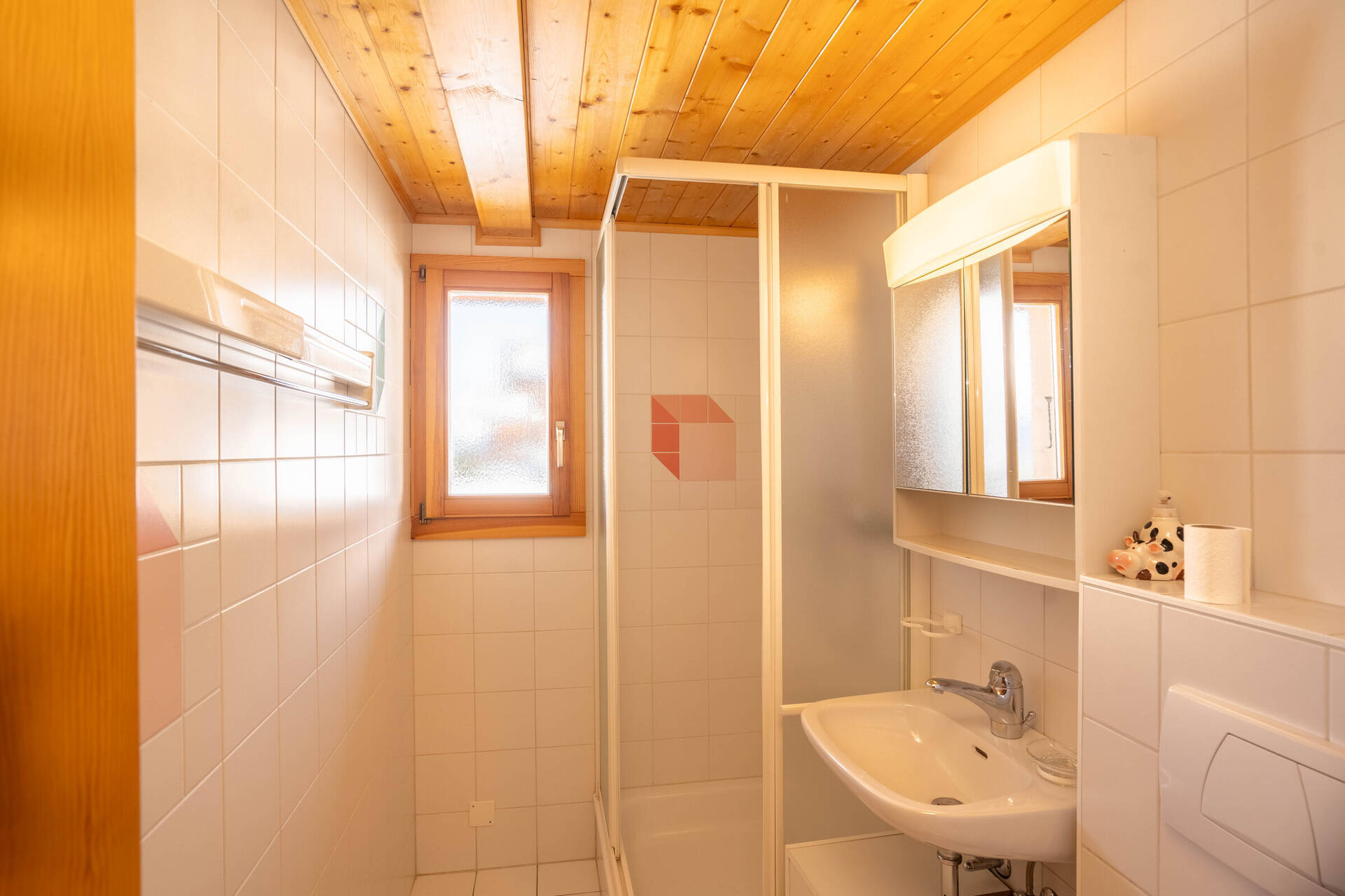 South-east oriented terrace and balcony, parking spot outside approximately 100 meters far from the chalet, garage.