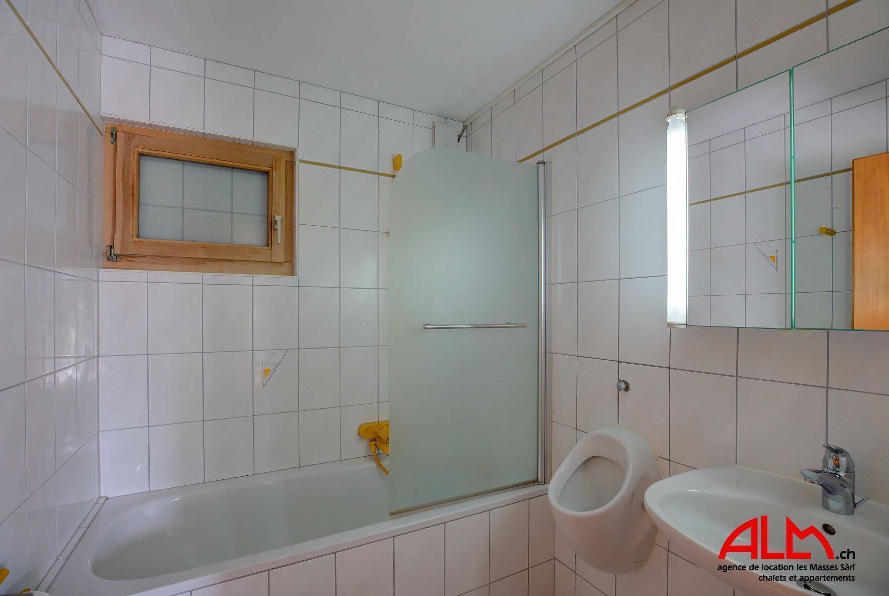 The left part chalet has: 1 bedroom with double bed, 1 bedroom with a bunk beds, 1 bathroom with shower/WC .