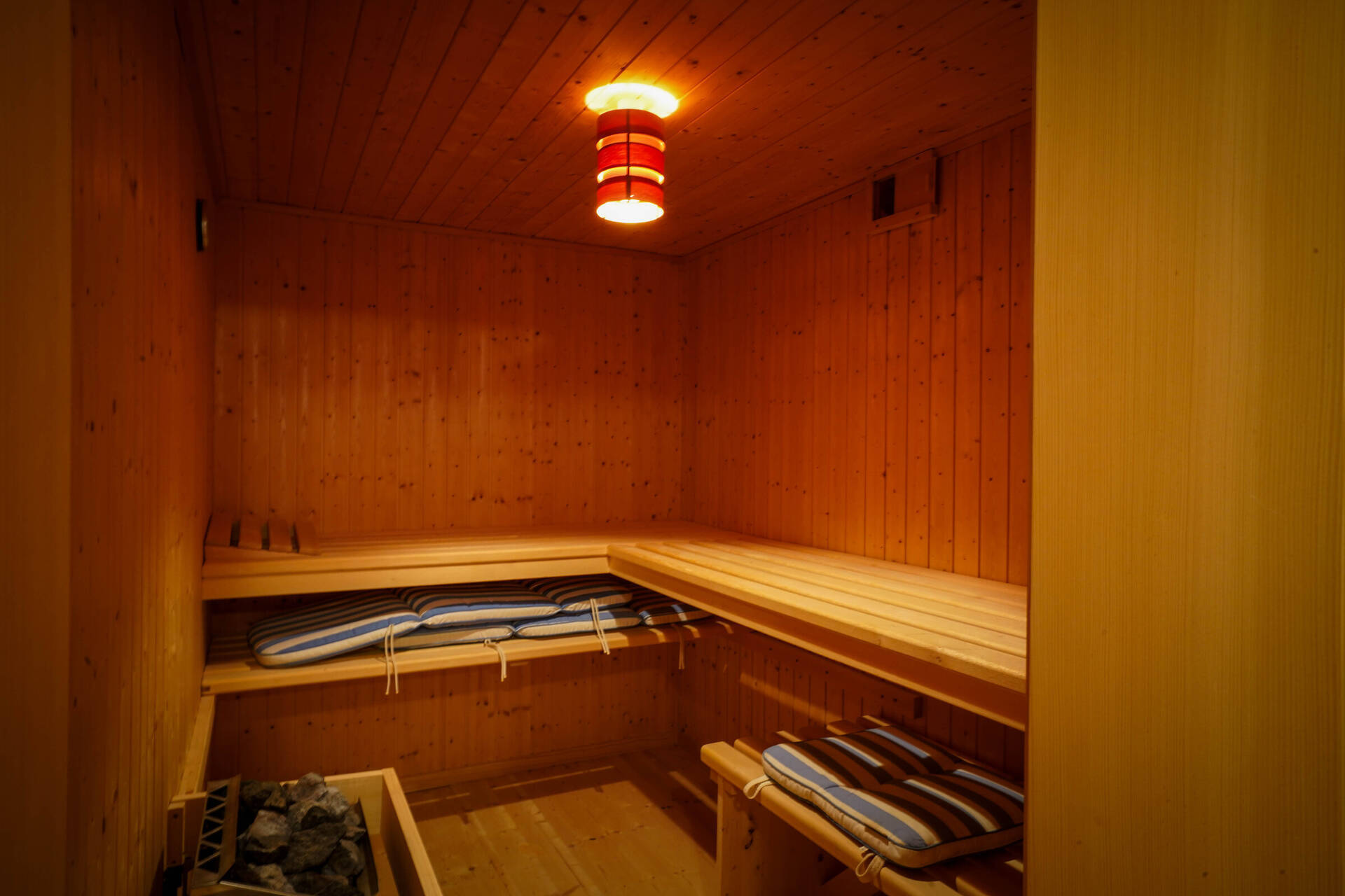 • Lower ground floor: 1 double bedroom with small kitchen, 1 bathroom with bath, shower. Separate WC. Sauna.