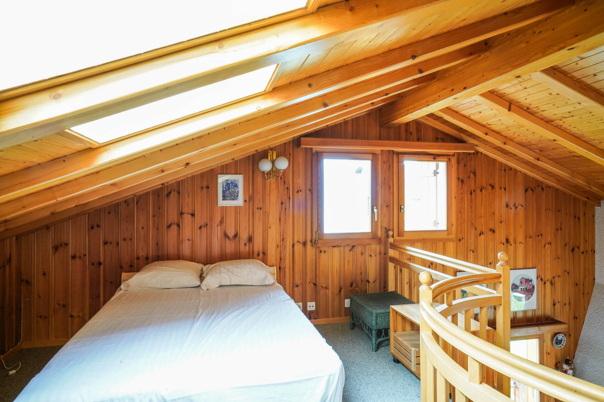 • Upper floor: Mezzanine floor open to the living room with 1 double bed.