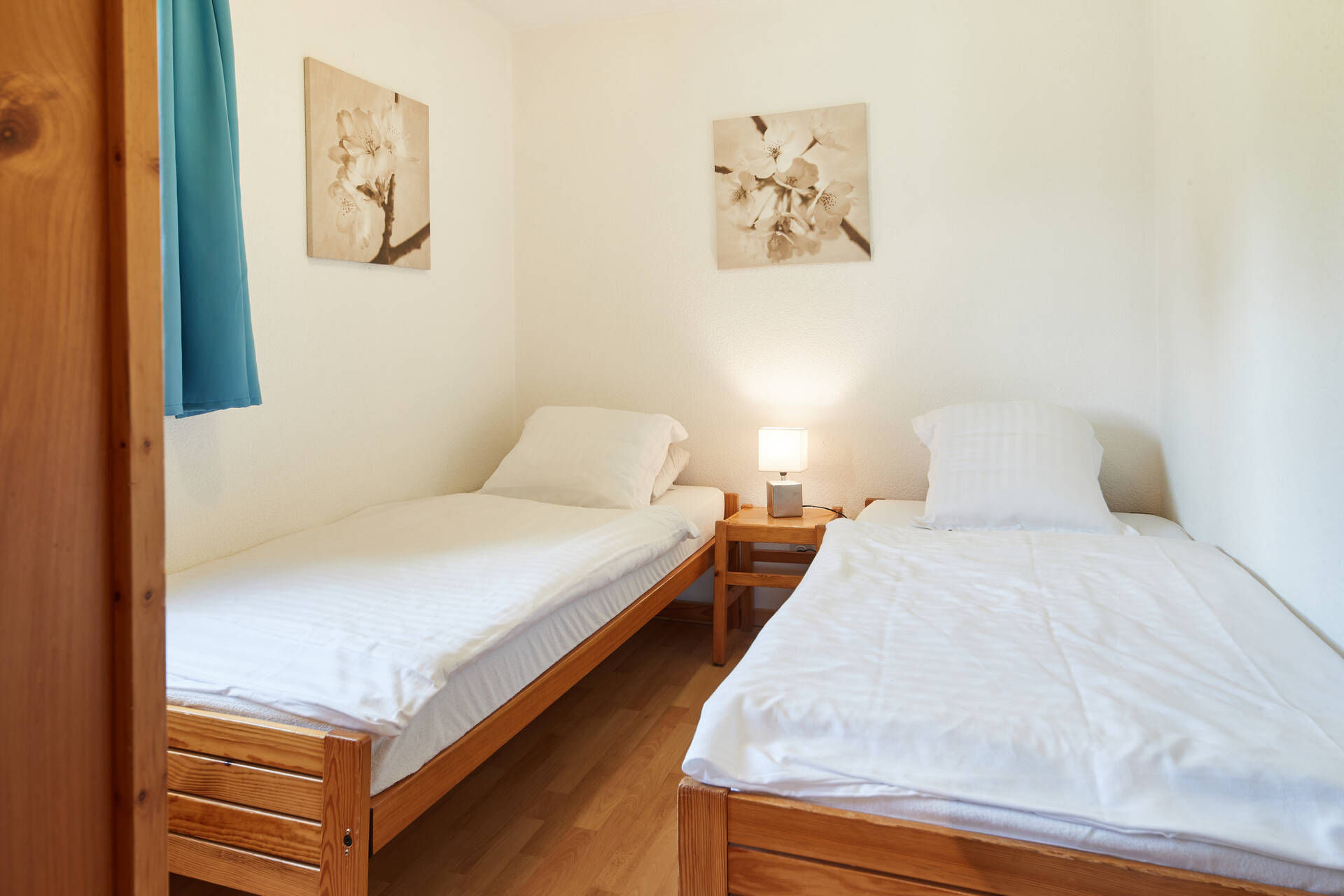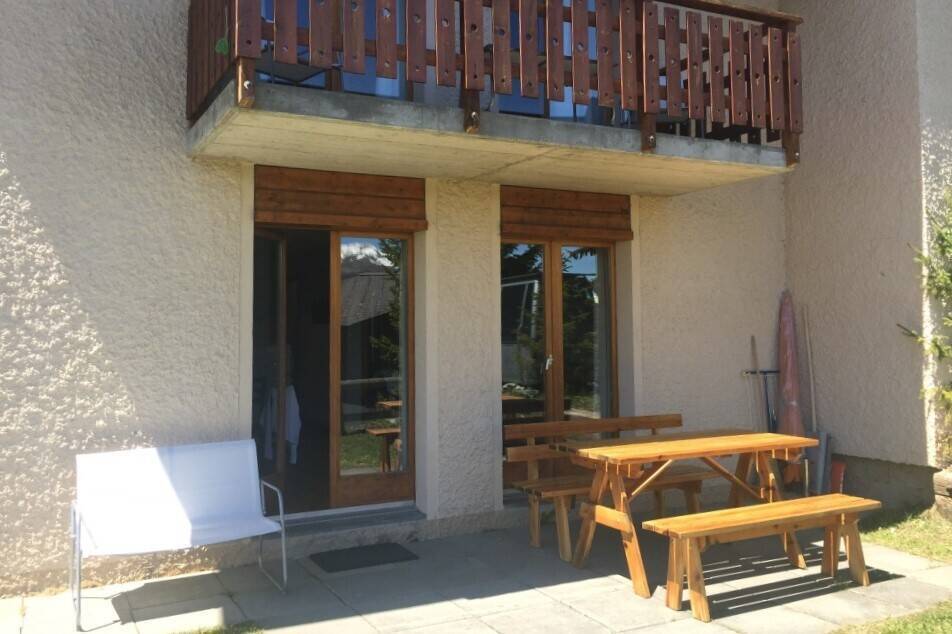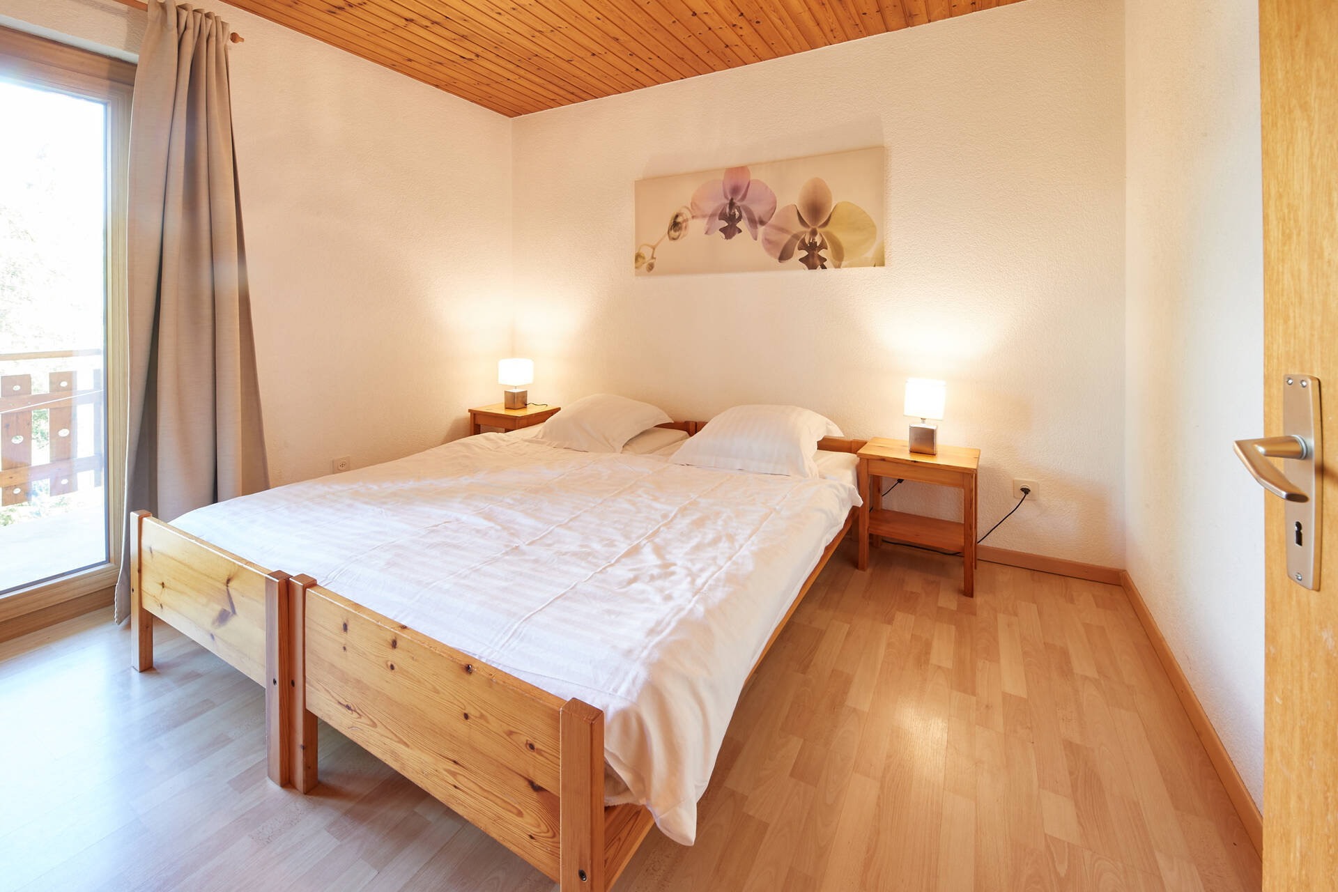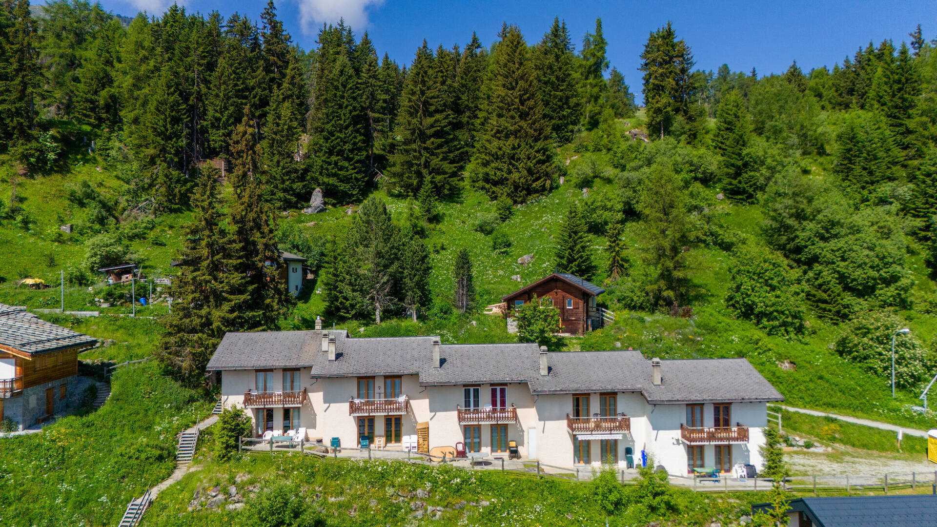 Chalet Lilas is a 5 room apartment for 9 persons. It has an open kitchen: 4 ceramic hobs, oven, large fridge (with freezer section), dishwasher, Nespresso coffee machine, filter coffee machine, toaster, microwave oven, kettle, fondue pot, raclette oven. The living room, with cable TV and WIFI, has a sitting area (1 corner sofa, 2 armchairs) and a dining area. Bedroom 1 with double bed (2 mattresses, 1.90 X 0.90), bedroom 2 with double bed (2 mattresses, 1.90 X 0.90), children's bedroom with 1 bunk bed and 1 single bed (3 mattresses, 1.90 X 0.90), bedroom on the lower floor with 2 single beds (2 mattresses, 1.90 X 0.90). Bathroom 1: WC, washbasin and bath. Bathroom 2: WC, washbasin and shower. Balcony and terrace on the east side with view of the Val d'Hérens. Chalet WITHOUT carpets. No pets allowed.