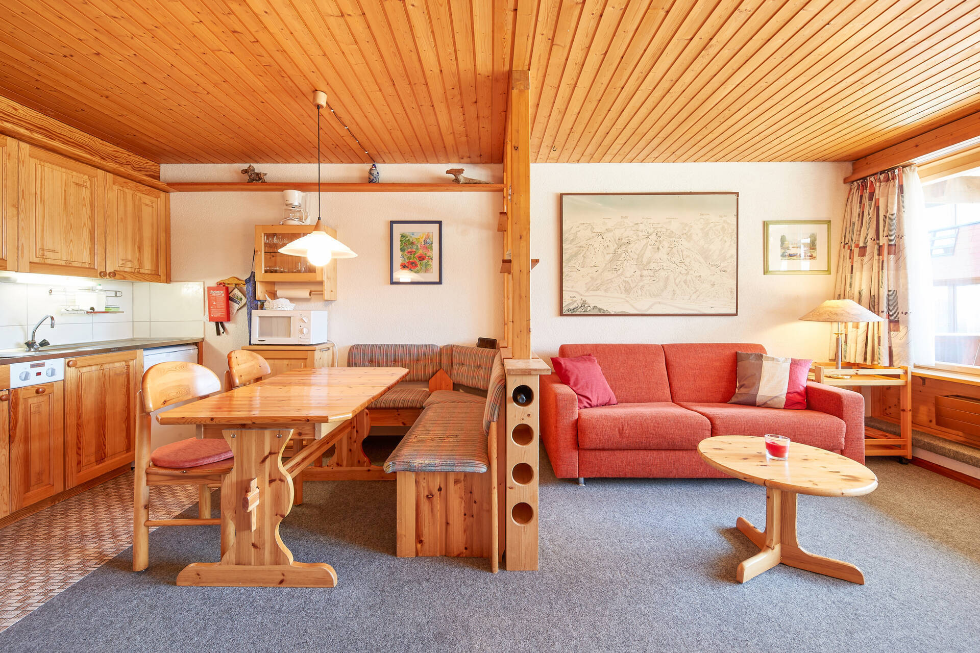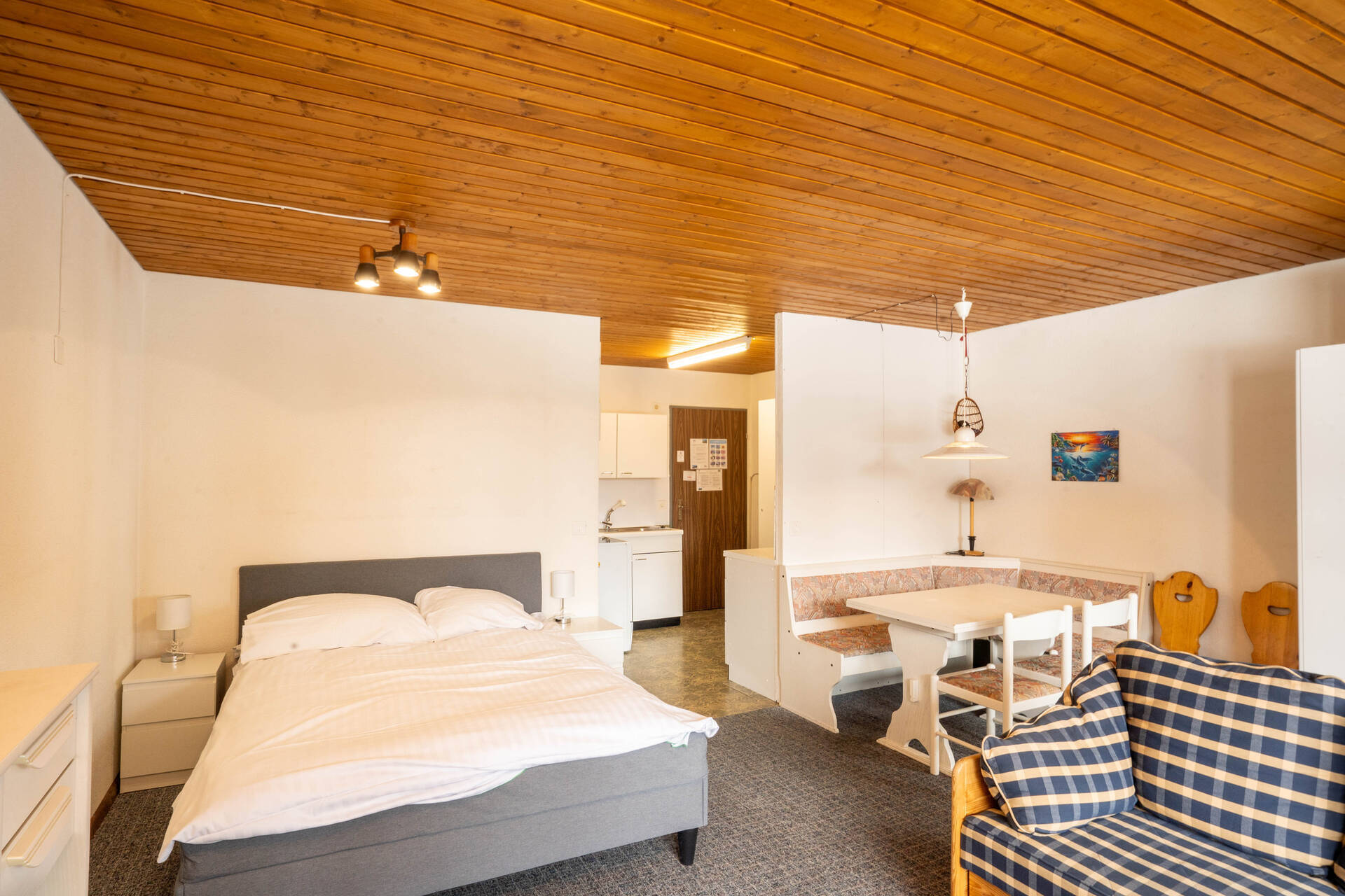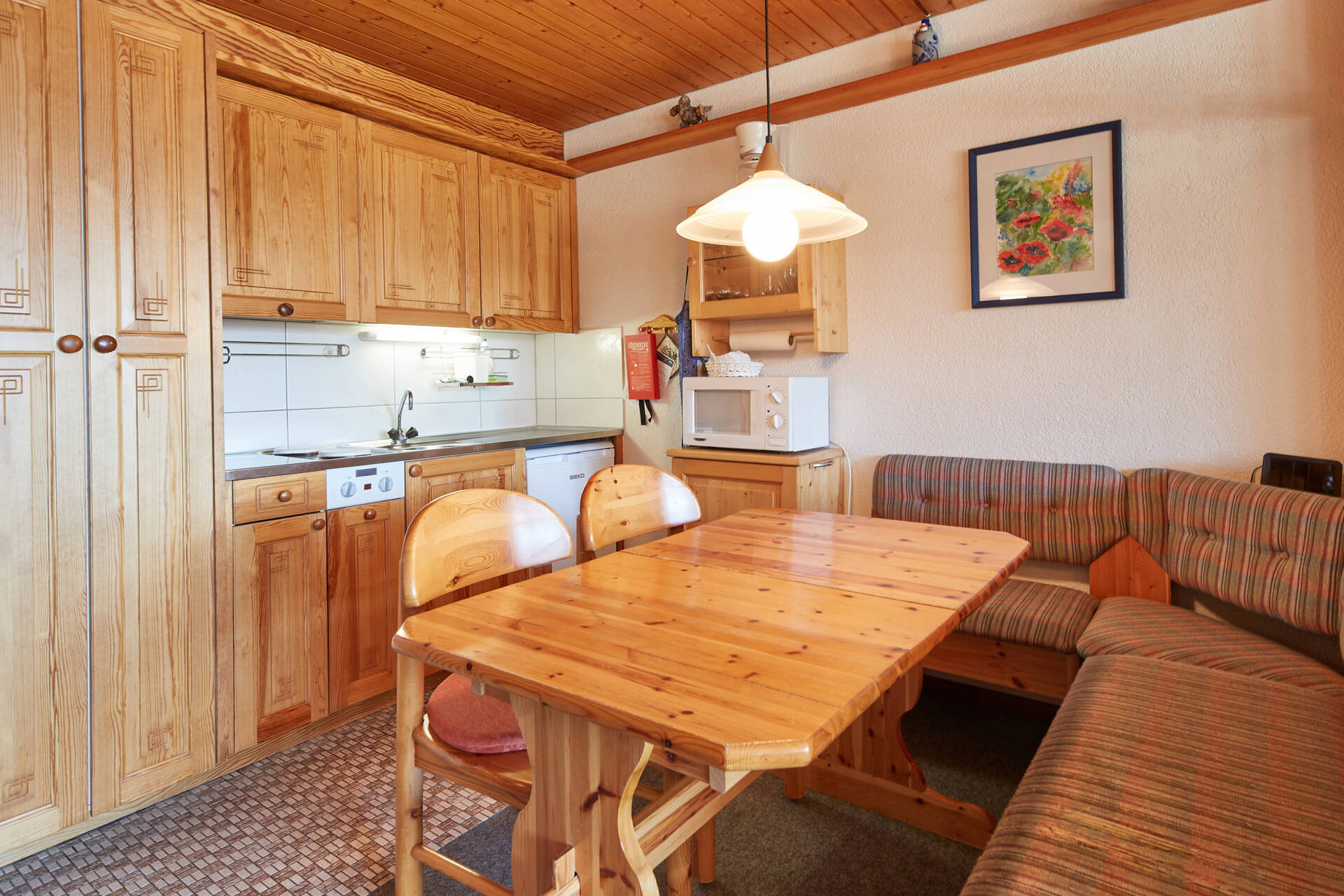 NouveautéStudio (type A) pour 4 personnes, situé au 2ème étage de l'immeuble Dixence à Thyon 2000. Il dispose d'une cuisine ouverte : 2 plaques électriques, frigo et four d'appoint. Le séjour, avec TV, est composé d'un coin salon (1 canapé, 1 canapé-lit double 1.90 X 1.60 et deux lits armoires 2.00 X 0.90) et d'un coin à manger. Salle de bain : WC, lavabo et baignoire. Balcon côté ouest avec vue sur les Alpes vaudoises. Appartement AVEC moquette. Animaux interdits.
