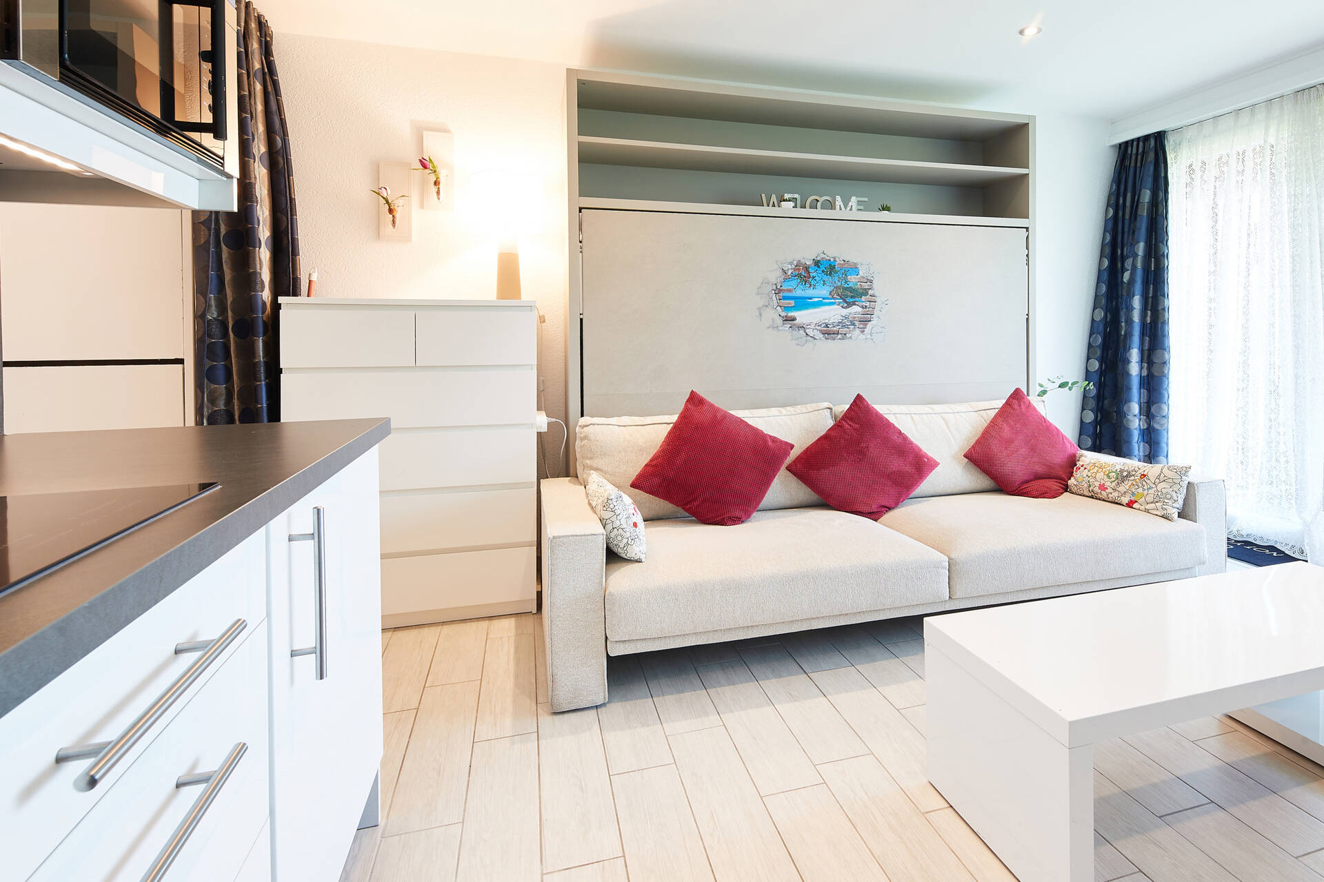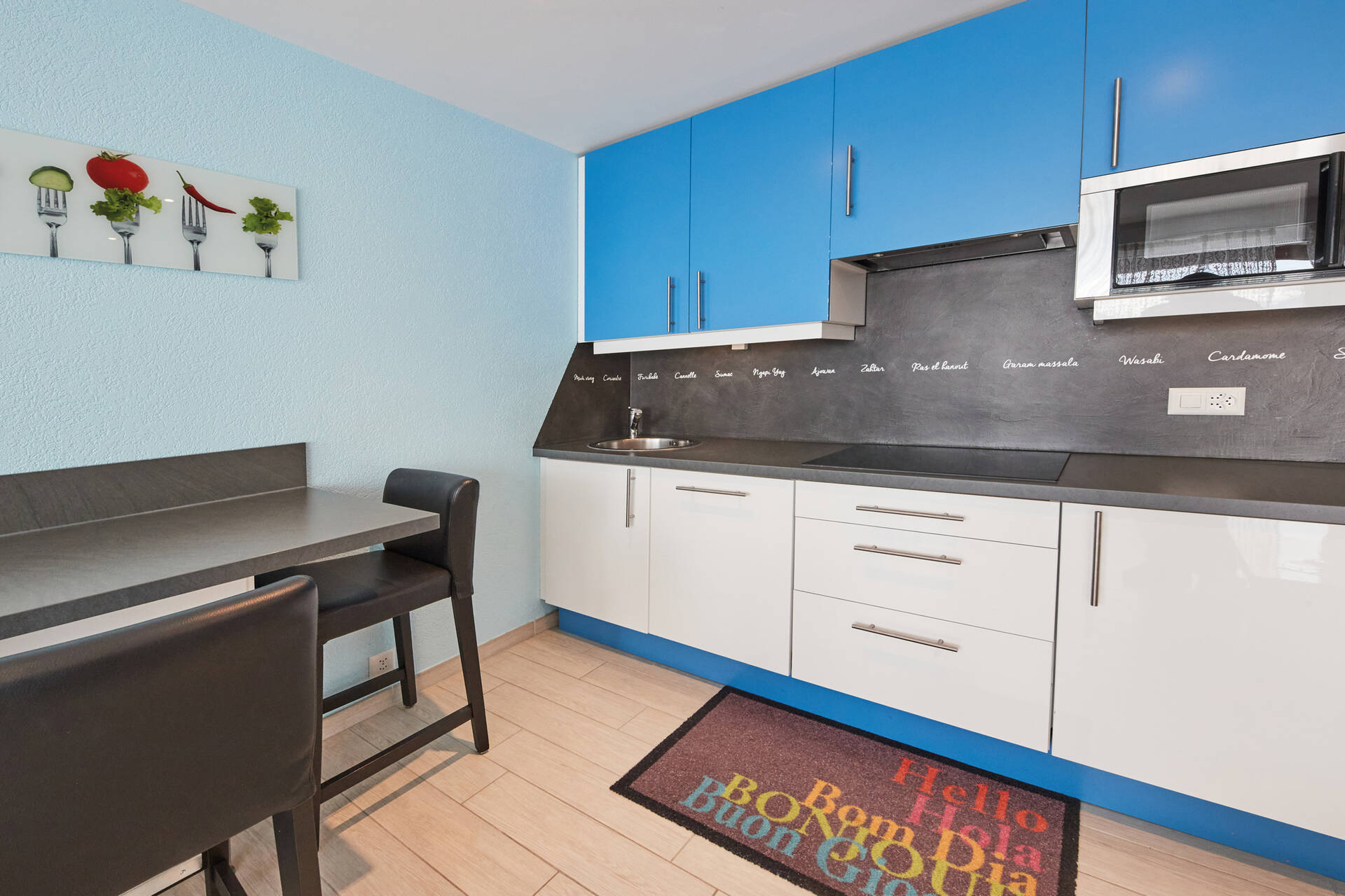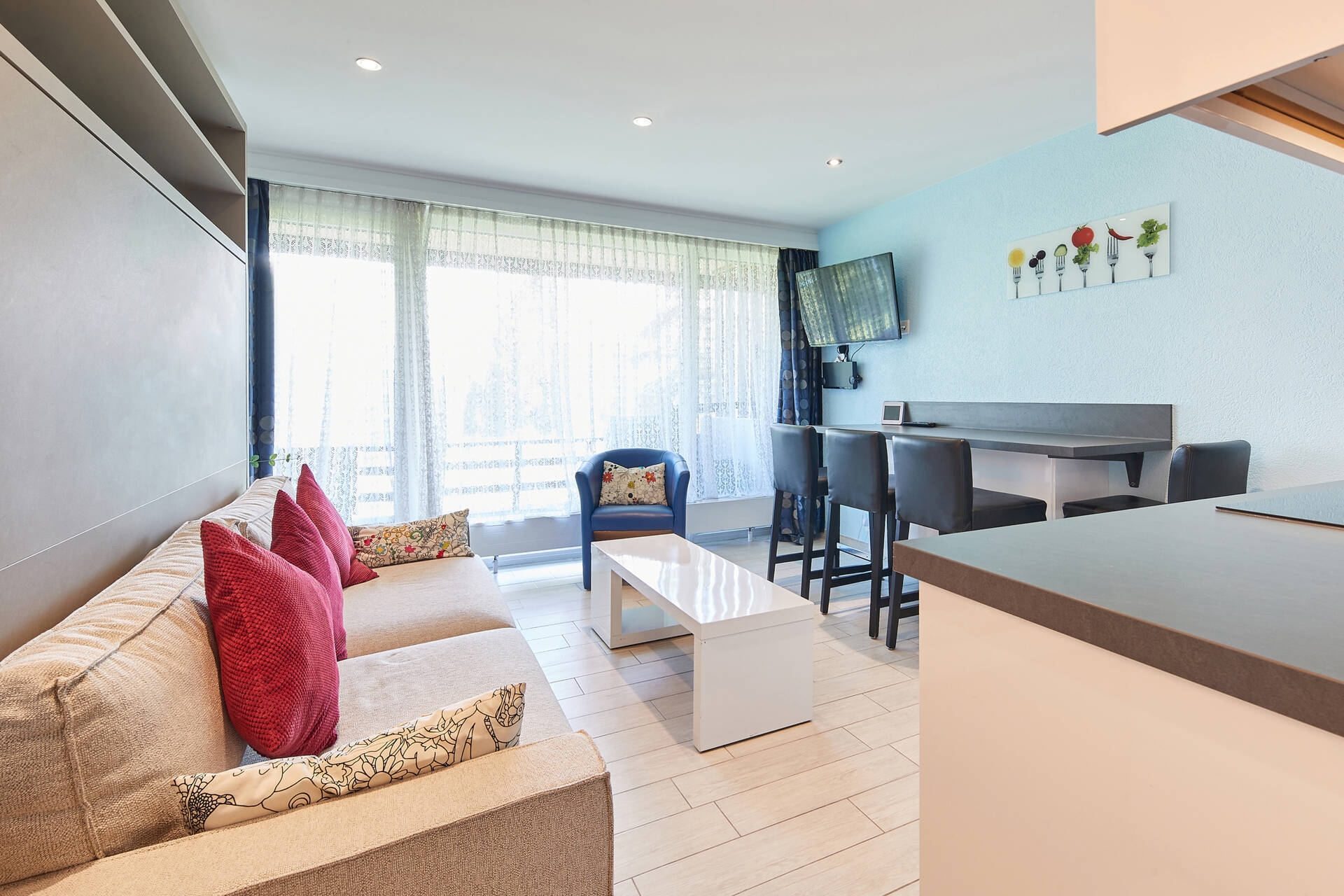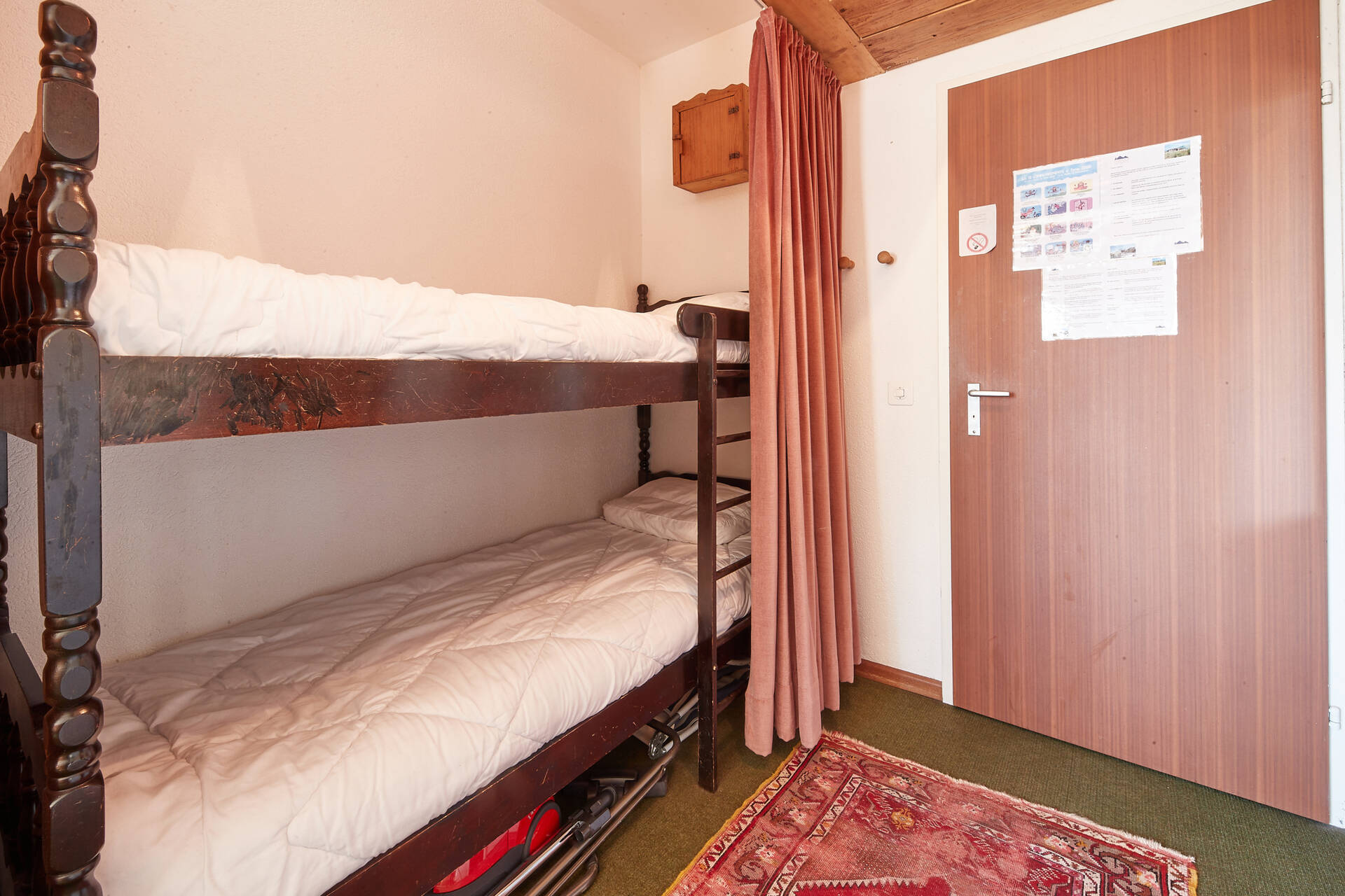 NouveautéStudio (type D) pour 4 personnes, situé au 3ème étage de l'immeuble Vélan à Thyon 2000. Il dispose d'une cuisine ouverte : 3 plaques électriques, four et frigo. Le séjour, avec TV et WIFI, est composé d'un coin salon (1 canapé-lit double 1.40 X 2.00 et un lit à étage rabattable 2.00 X 0.80) ainsi que d'un coin à manger. Salle de bain : WC, lavabo et douche. Balcon côté est avec vue sur la place centrale de Thyon 2000. Appartement SANS moquette. Animaux interdits.