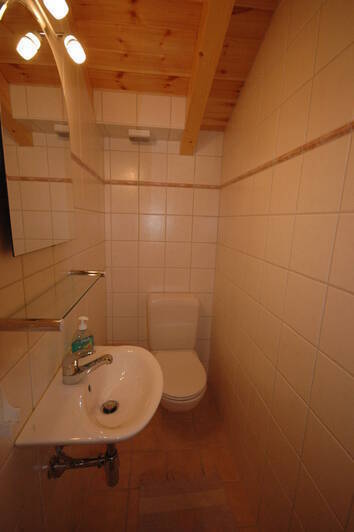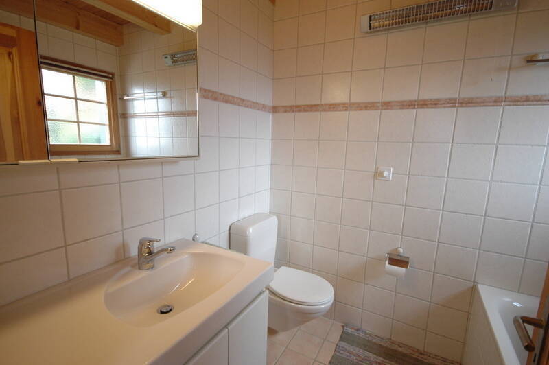 Petit chalet de 4 pièces sur 2 étages (4 - 6 pers.) comprenant au rez-de-chaussée un séjour-cuisine avec coin à manger (table à manger pour 6 personnes), 1 salle de bain avec douche/WC. Petite cabane annexe de rangement derrière le mayen.