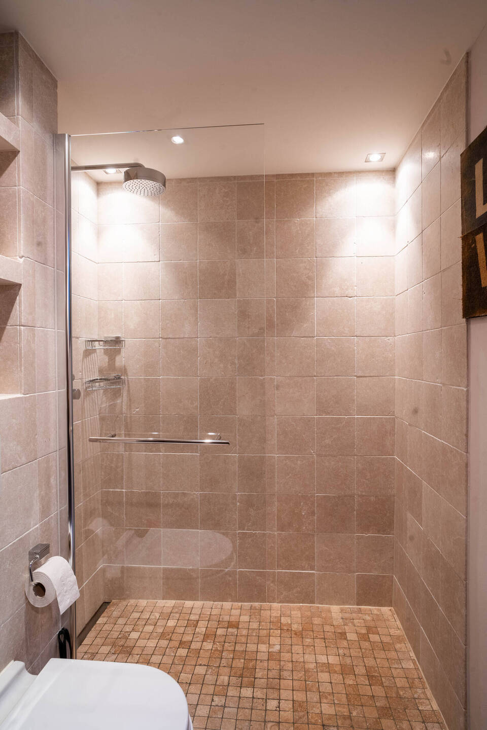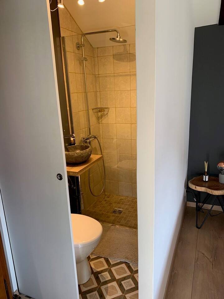 Etage : 1 chambre à lit double (140 cm), 1 chambre à lit gigogne, 1 chambre à canapé lit (140cm) avec dressing, 1 salle de bain avec douche/WC.
