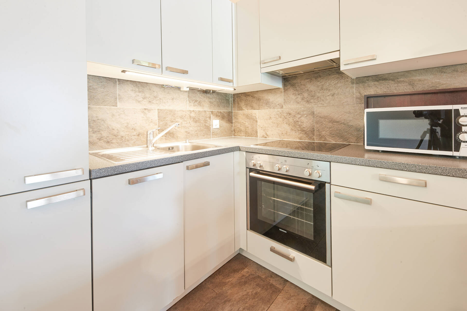 Il dispose d'une cuisine ouverte : 4 plaques en vitrocéramique, un four, un petit frigo (avec partie congélation), un lave-vaisselle, une machine à café nespresso, un four à microonde, une bouilloire, un caquelon à fondue, un four à raclette.